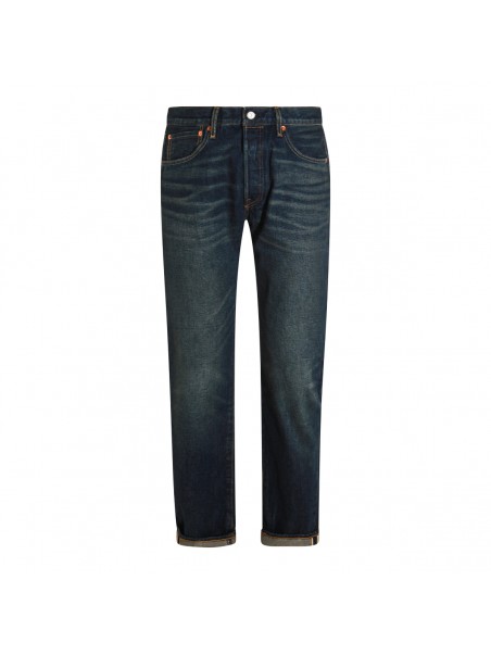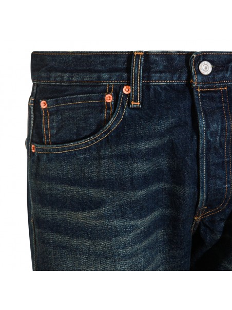 Dark blue cotton denim 501 jeans from Levi's featuring frontal fastening, belt loops, pockets and regular vestibility.
