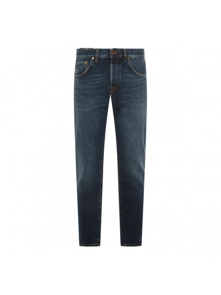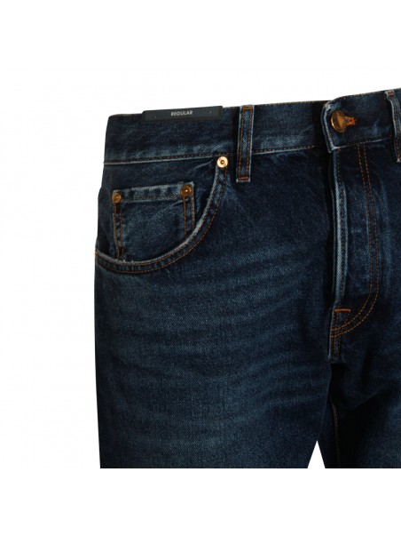 Blue denim jeans from Pt Torino featuring frontal fastening, belt loops and regular vestibiility.