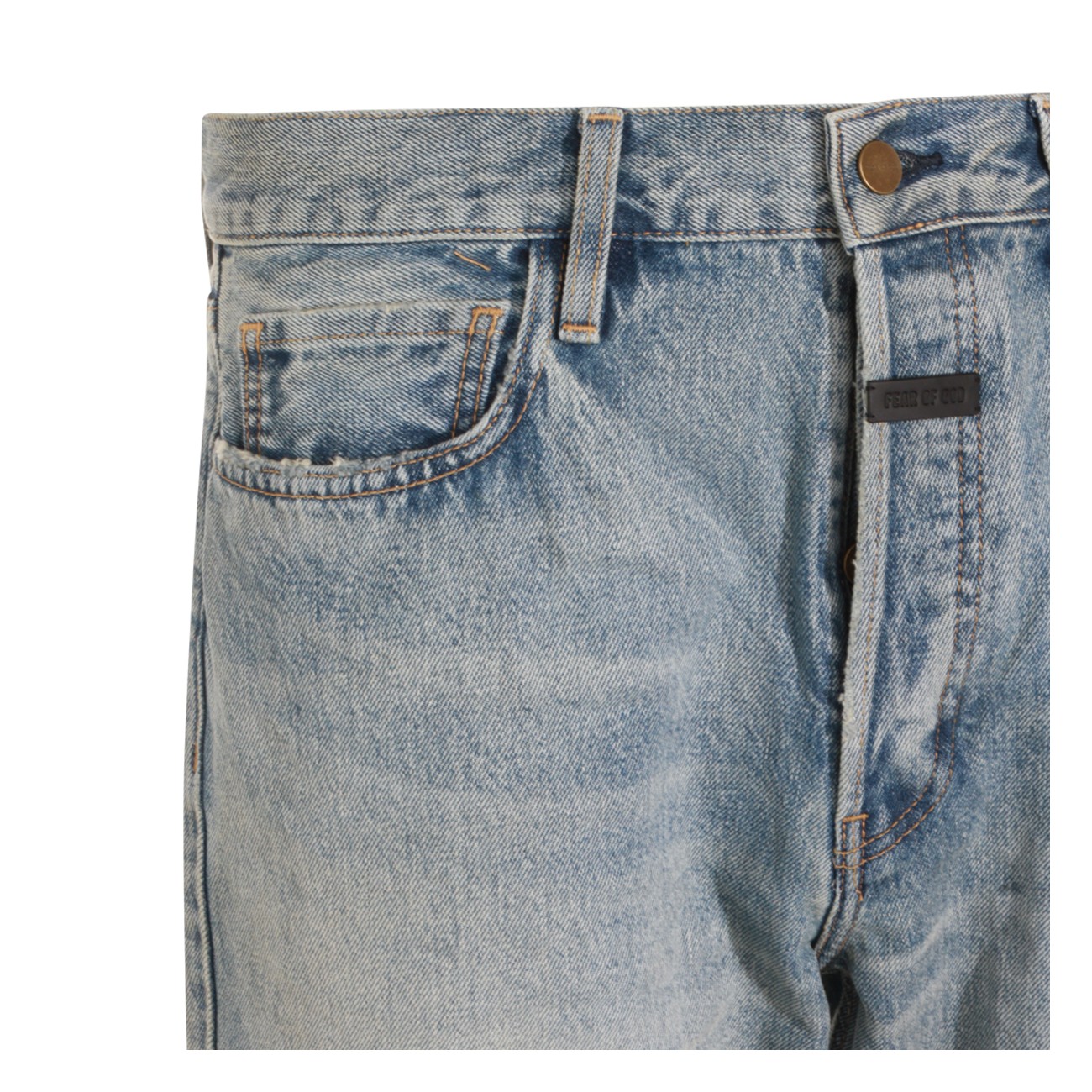 Light blue cotton jeans from Fear Of God featuring belt loops, zip and button fastening, classic five pockets and regular vestibility.