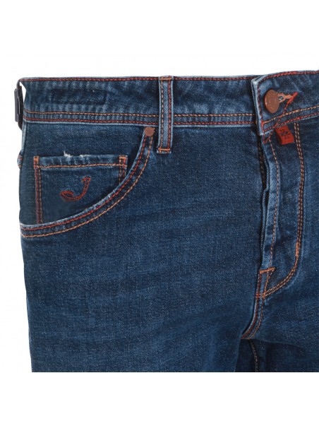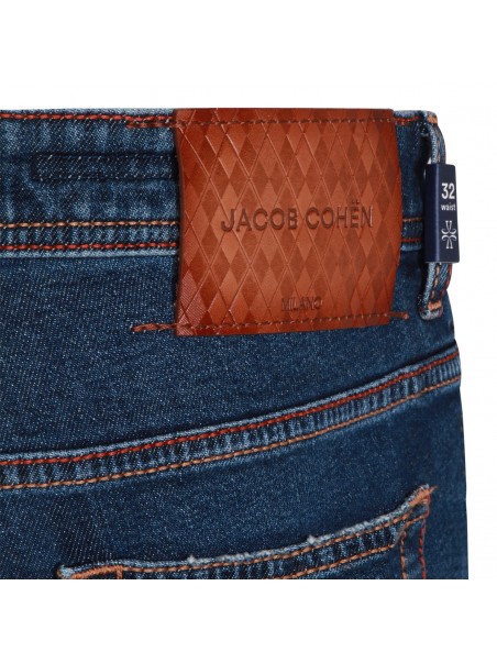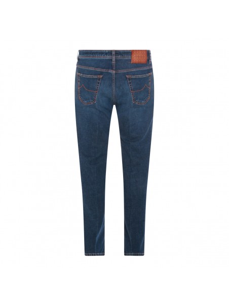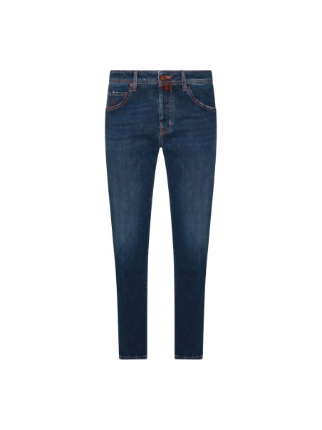 Dark blue cotton jeans from Jacob Cohen featuring belt loops, zip and button fastening, classic five pockets and slim fit.