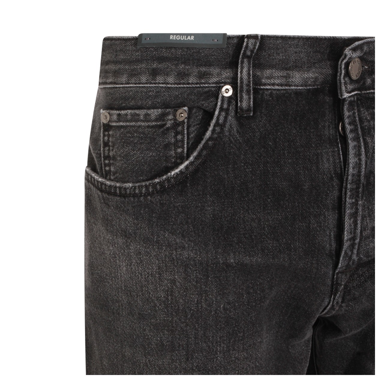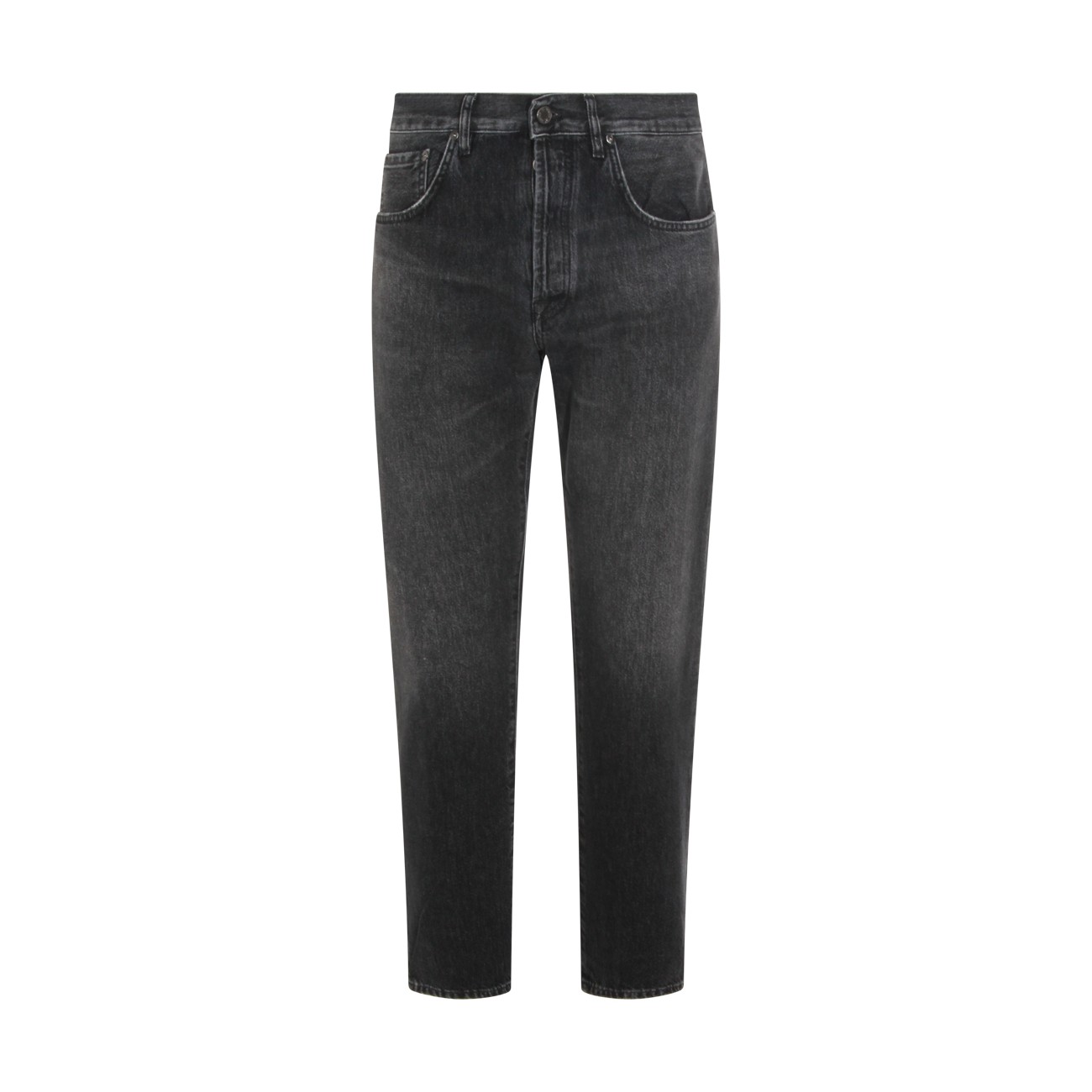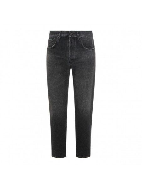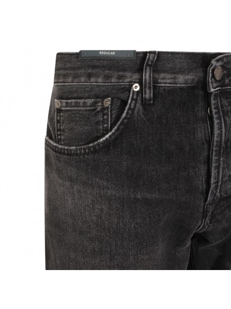 Dark grey cotton jeans from PT Torino Denim featuring belt loops, zip and button fastening, classic five pockets and straight leg.