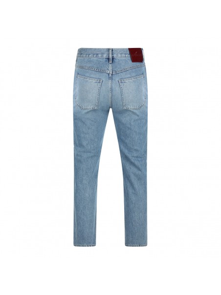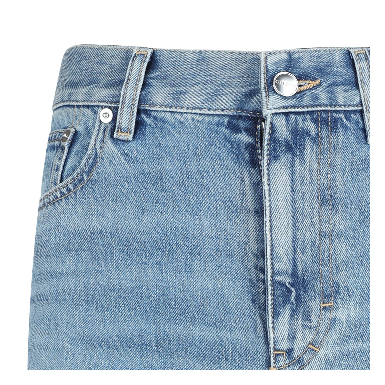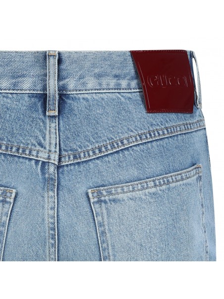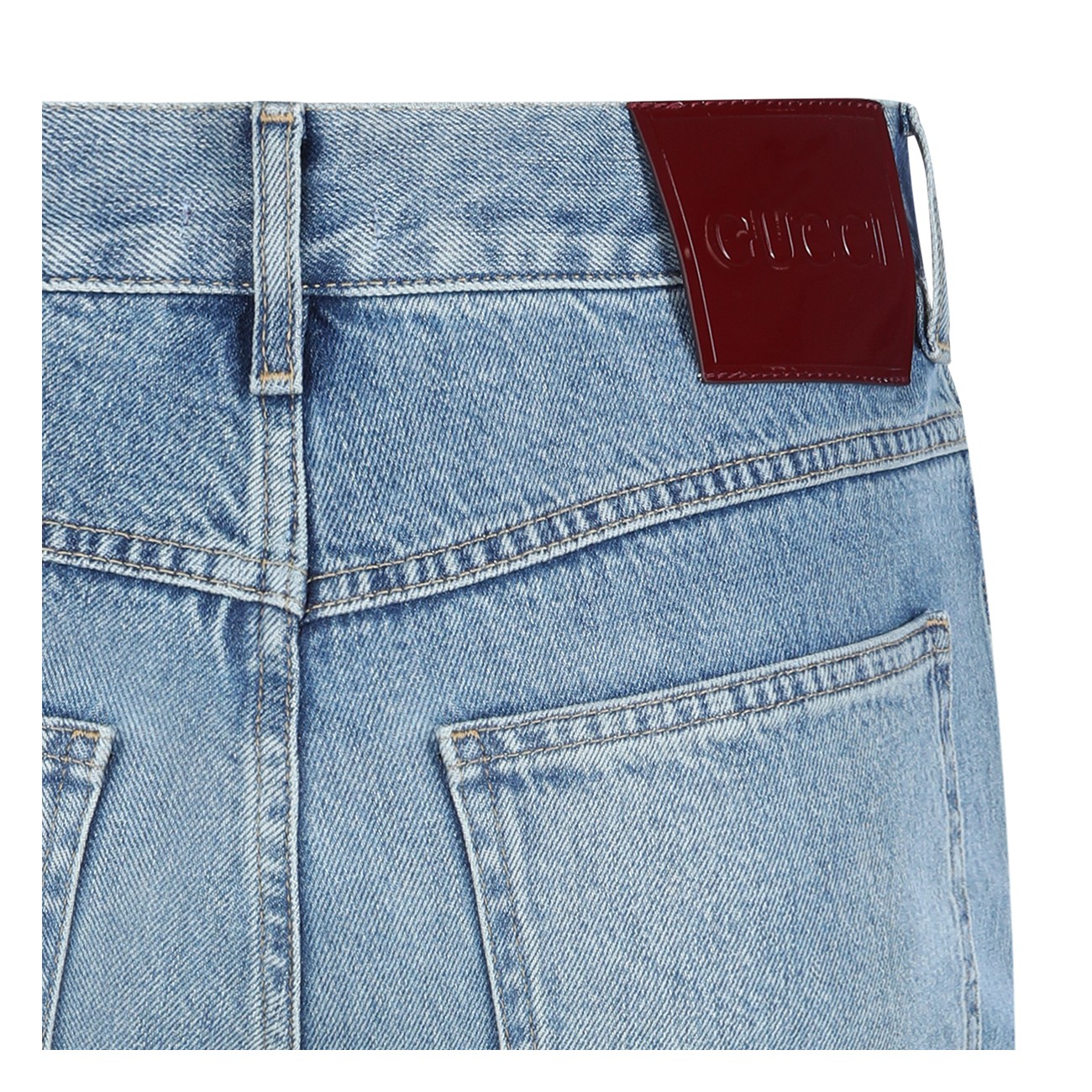 Blue cotton jeans from Gucci featuring high waist, belt loops, zip fastening, pockets and regular vestibility.