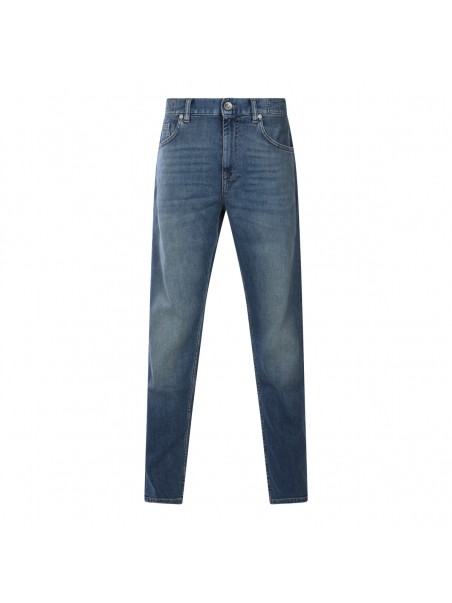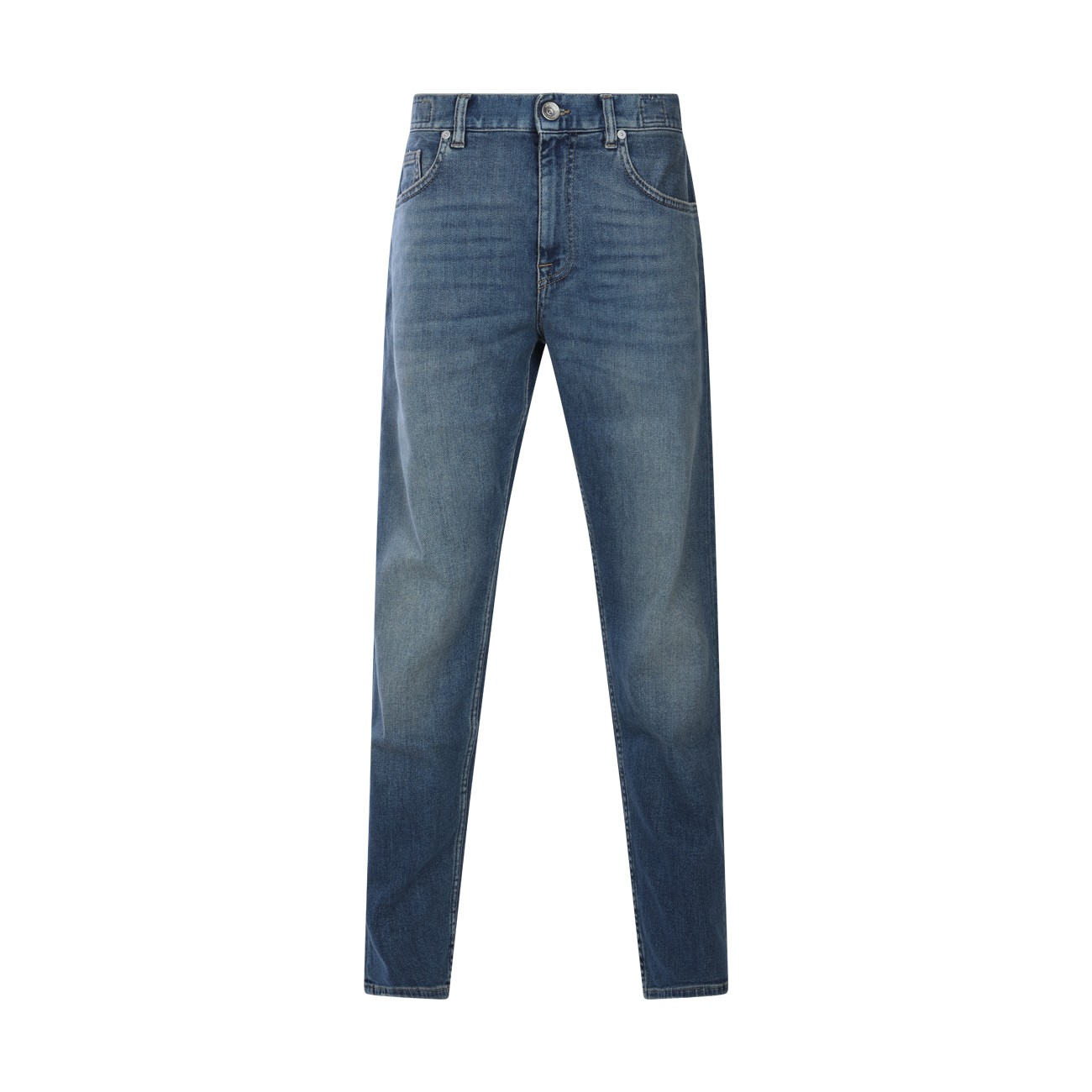 Blue cotton denim jeans from Eleventy featuring frontal fastening, belt loops, pockets and regular vestibility.