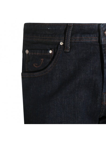Dark blue denim jeans from Jacob Cohen featuring frontal fastening, belt loops, pockets and regular vestibility.