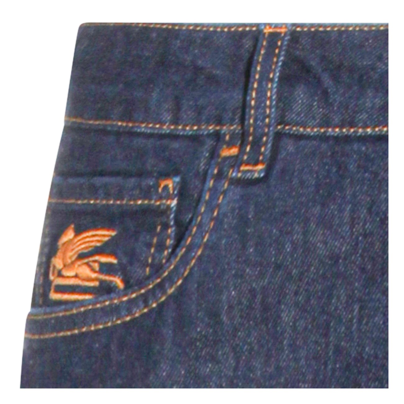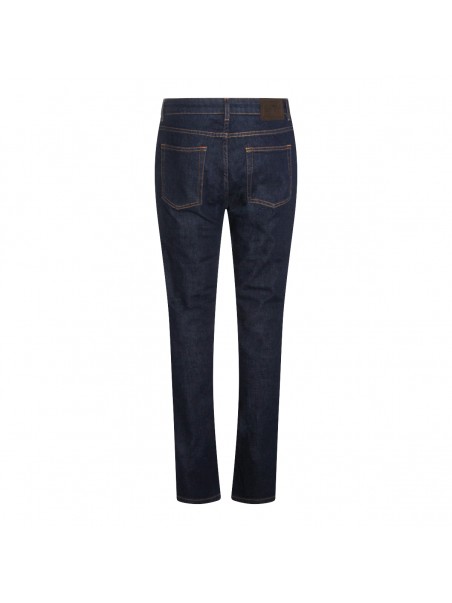 Dark blue cotton jeans from Etro featuring mid waist, belt loops, button and zip fastening, pockets, embroidered logo, straight leg and regular vestibility.