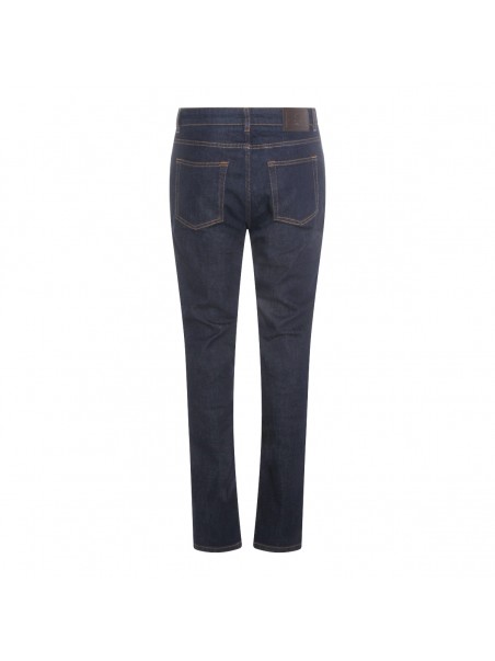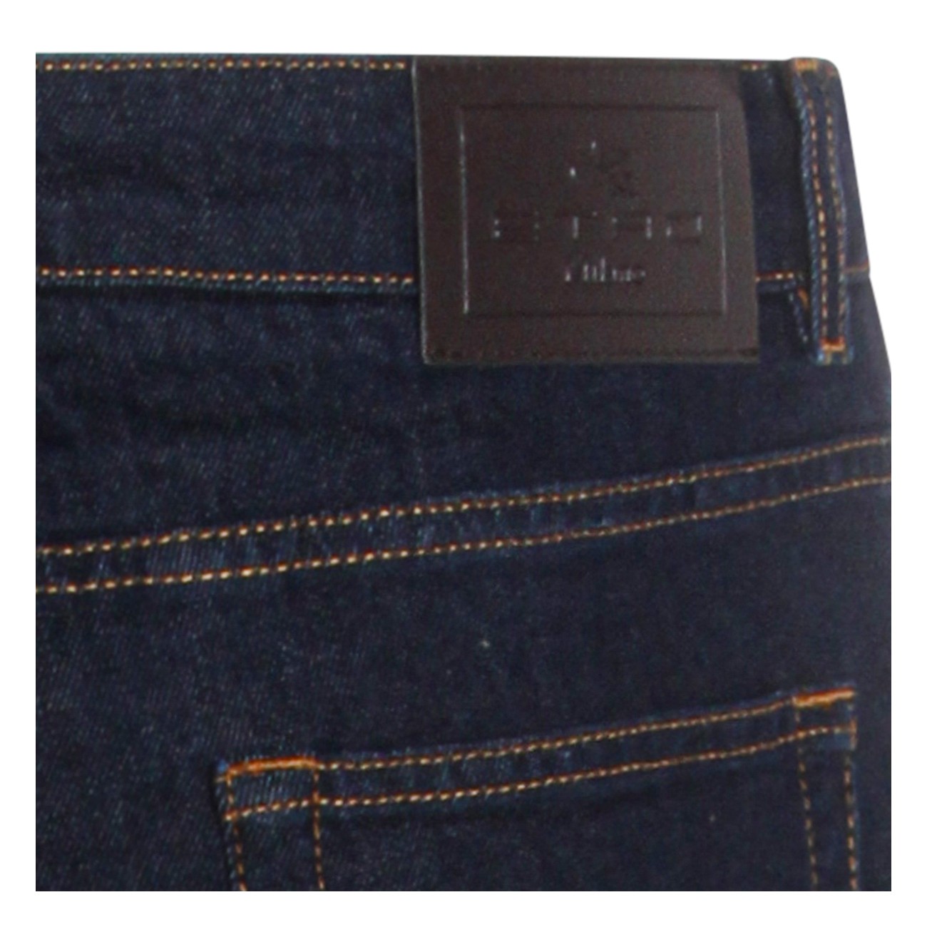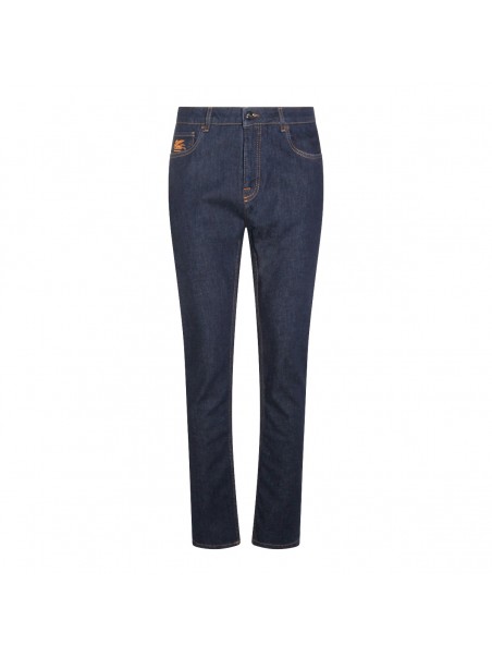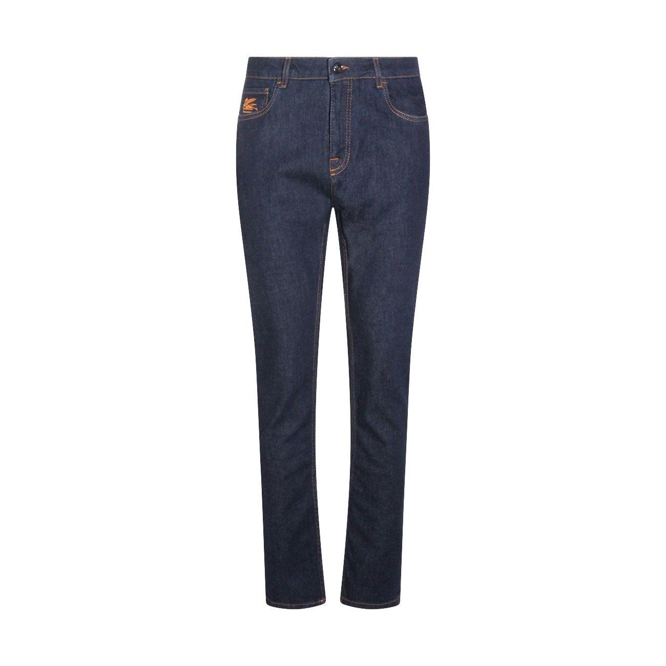 Dark blue cotton jeans from Etro featuring mid waist, belt loops, button and zip fastening, pockets, embroidered logo, straight leg and regular vestibility.