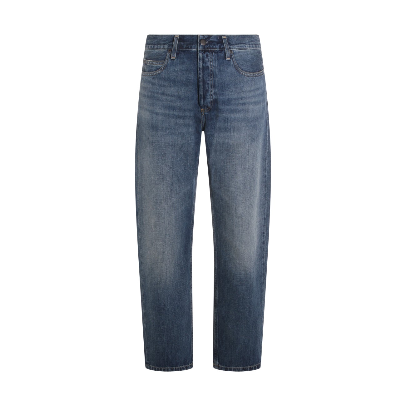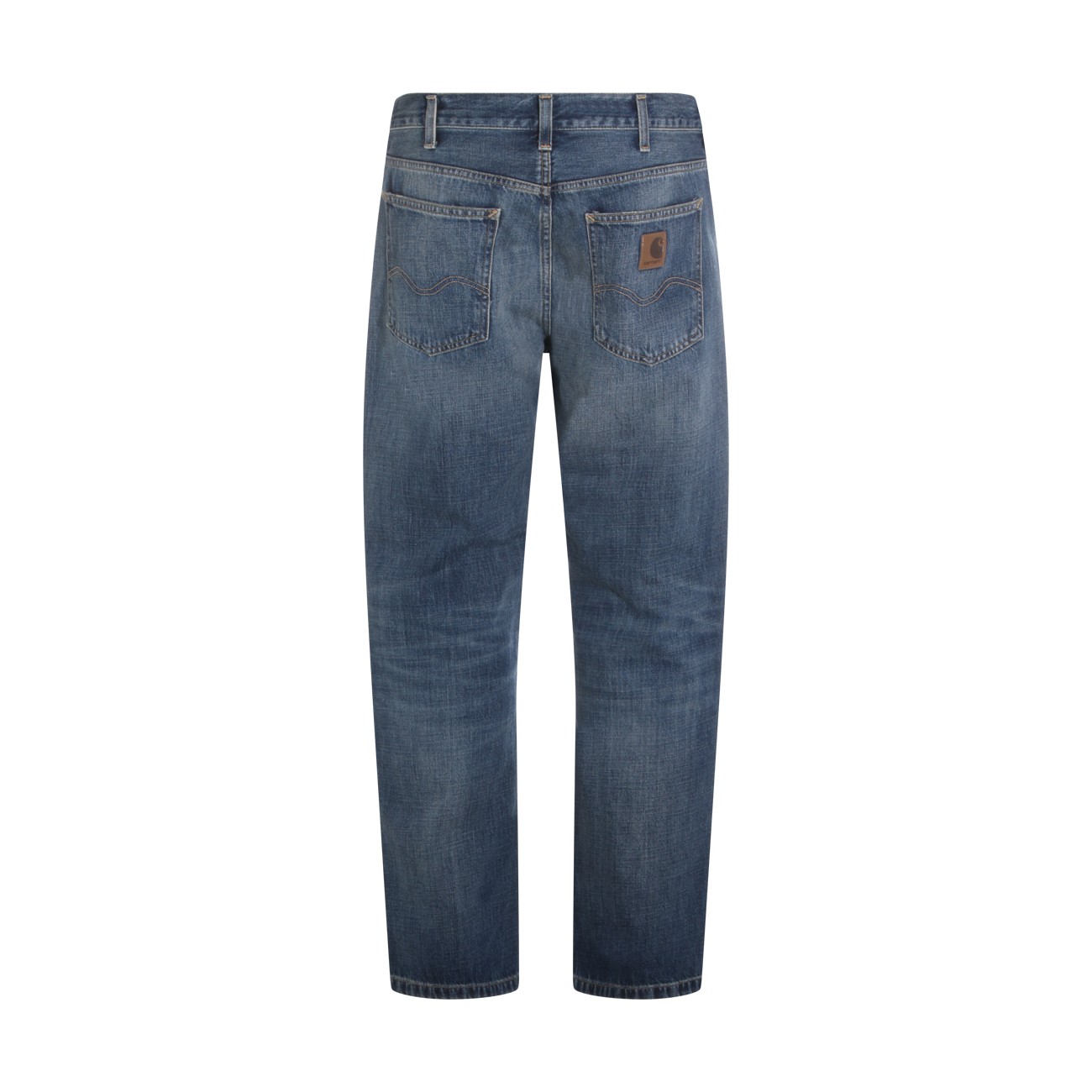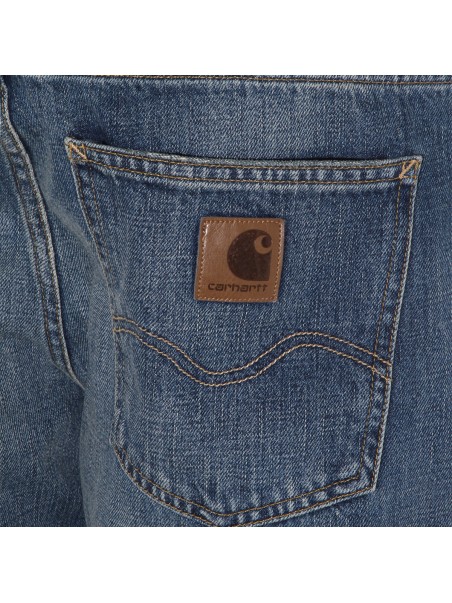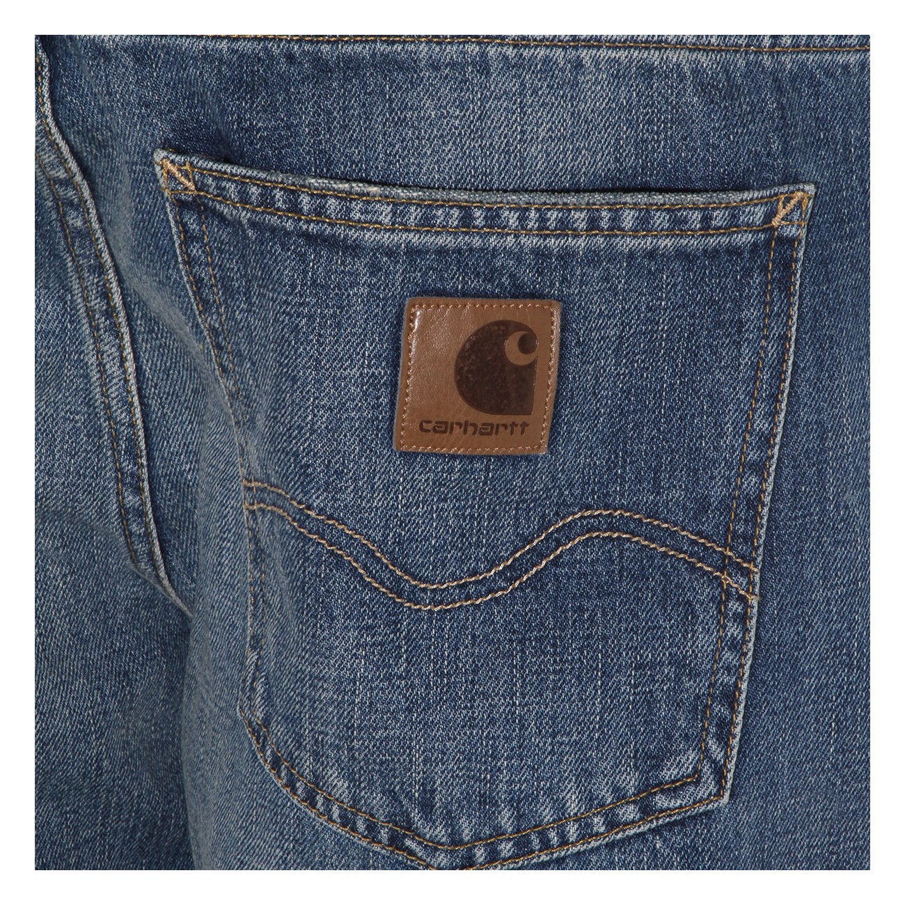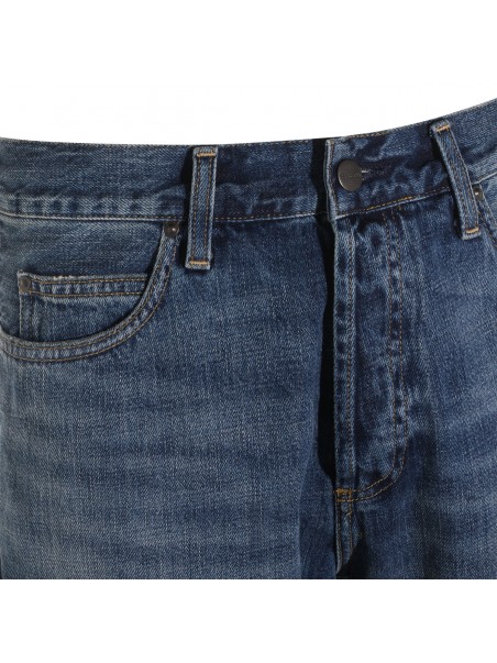 Blue dark used cotton denim jeans from Charhartt Wip featuring zip and button fastening, belt loops, classic pockets and regular fit