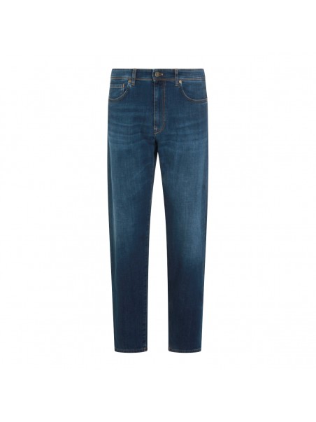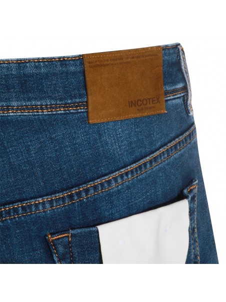 Blue cotton denim jeans from Incotex Blue Division featuring frontal fastening, belt loops, pockets and regular vestibility.