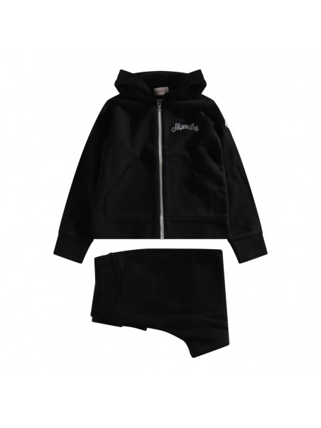 Black cotton jumpsuits from Moncler featuring two pieces, sweatshirt with hood, zip fastening and long sleeves and pants with elasticizated waist and pockets.