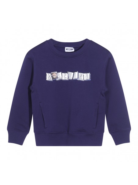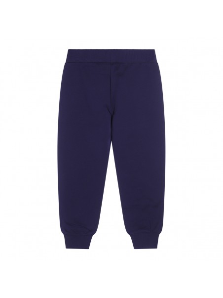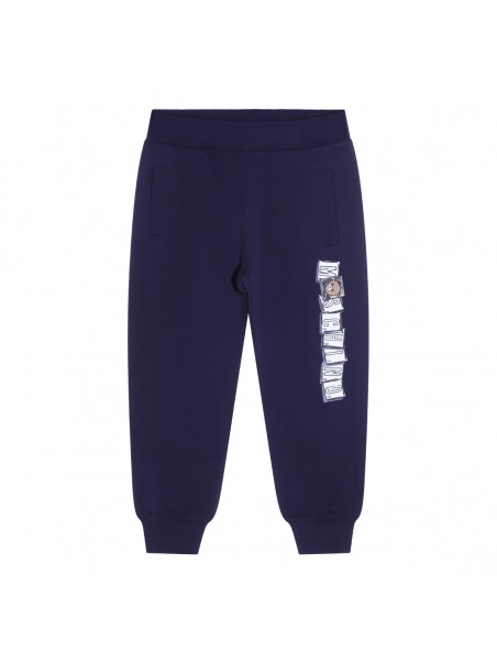 Navy cotton jumpsuits from Moschino featuring 2 pieces, round collar, long sleeves, ribbed cuffs and hem , pants with elasticated waistband, pockets, print and regular vestibility.