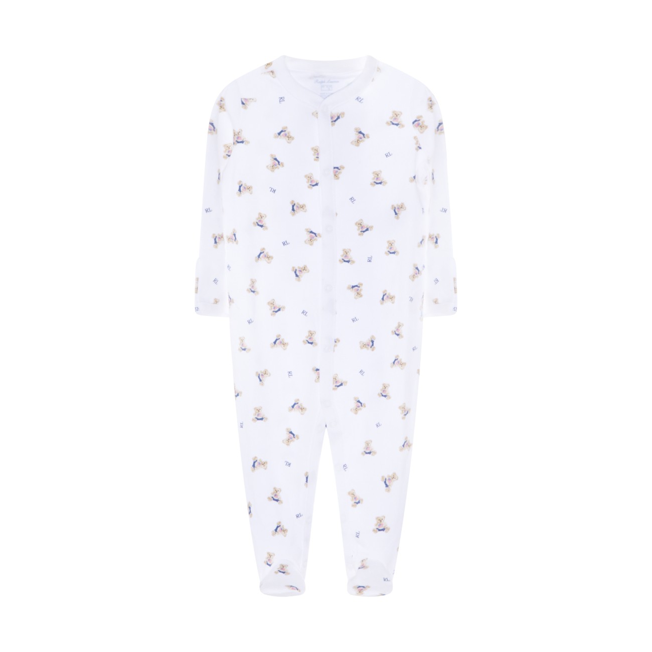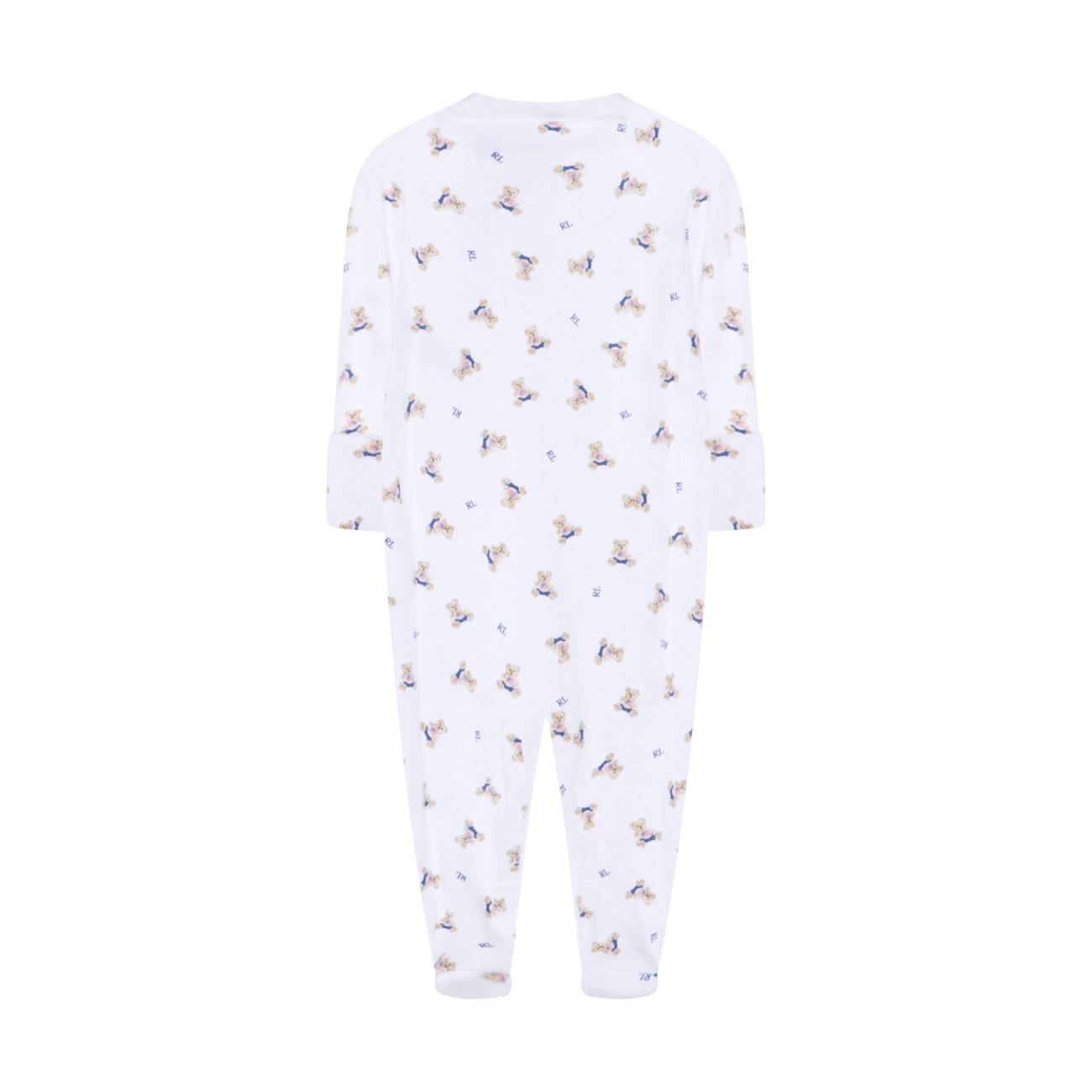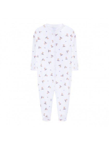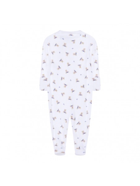 White and blue cotton jumpsuit from Polo Ralph Lauren featuring round collar, long sleeves and frontal buttons fastening.