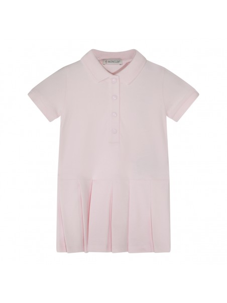 Pink cotton dress from Moncler featuring short sleeves, polo shirt collar with buttons and regular vestibility.