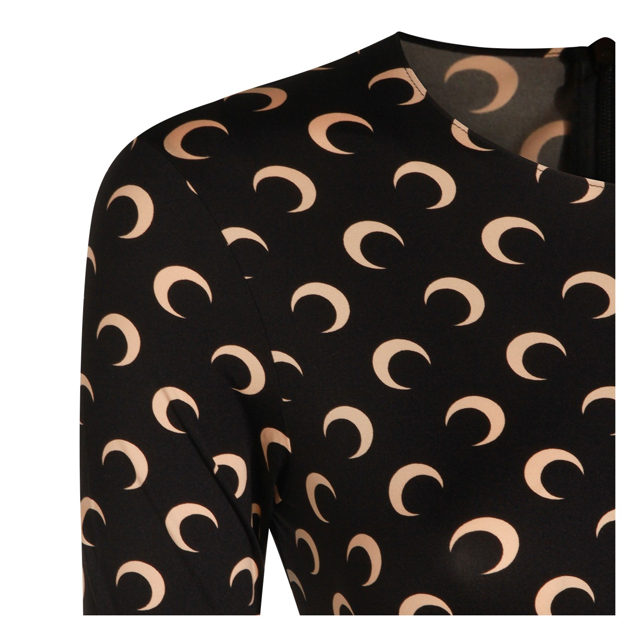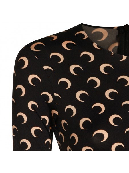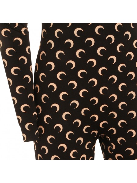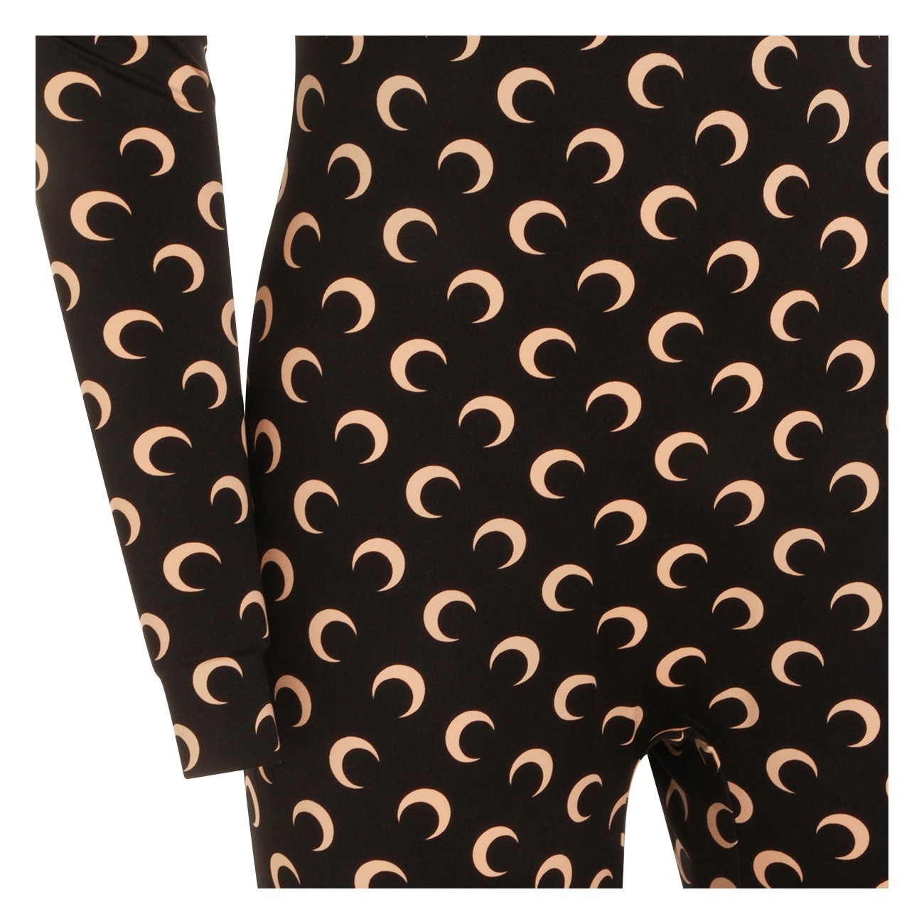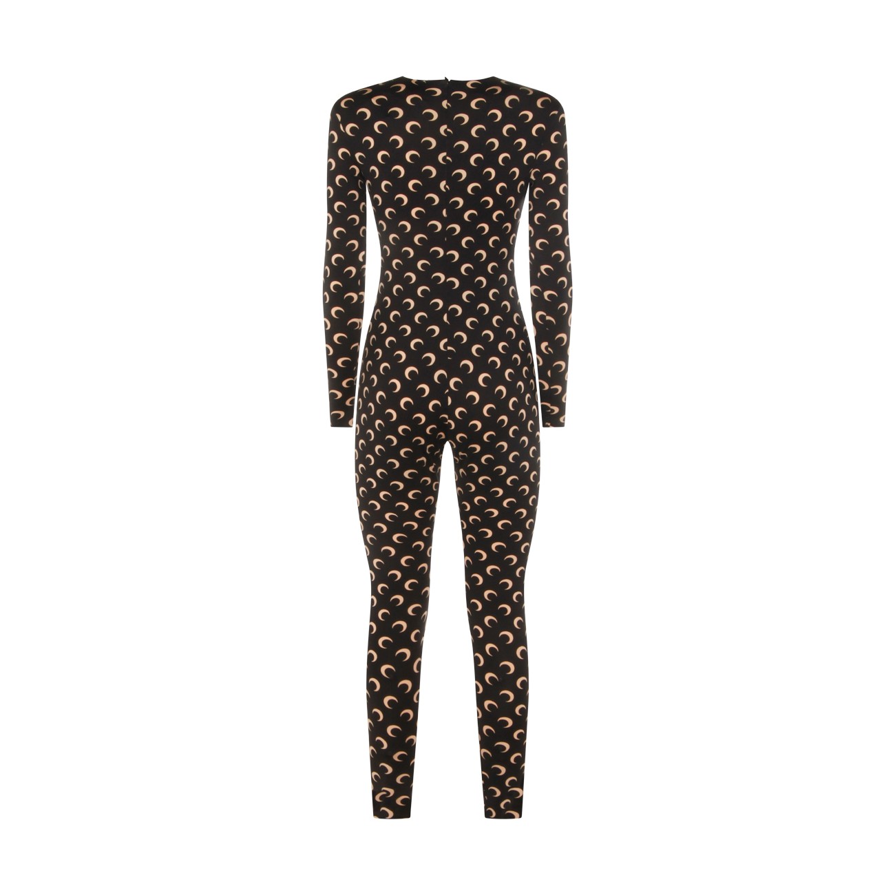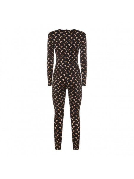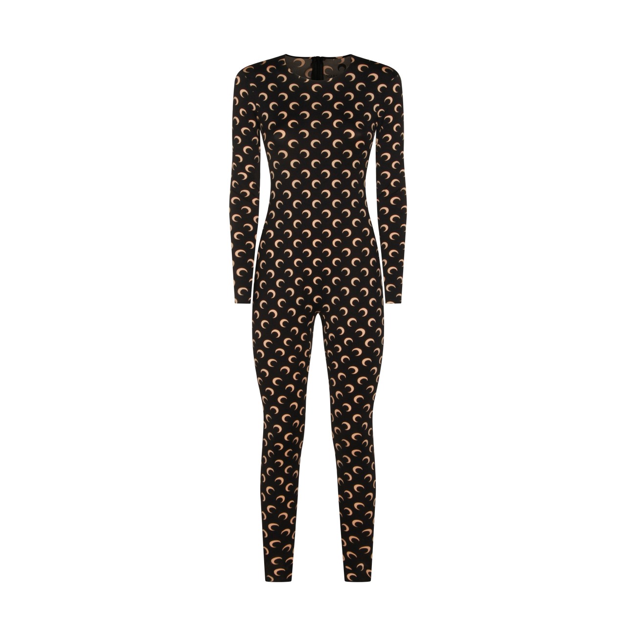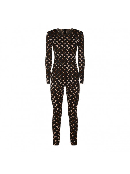 Black jumpsuit from Marine Serre featuring long sleeves, round collar, all over moon pattern and elasticizated vestibility.