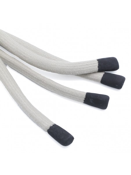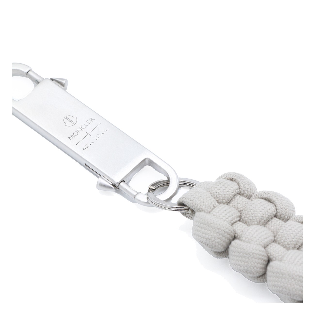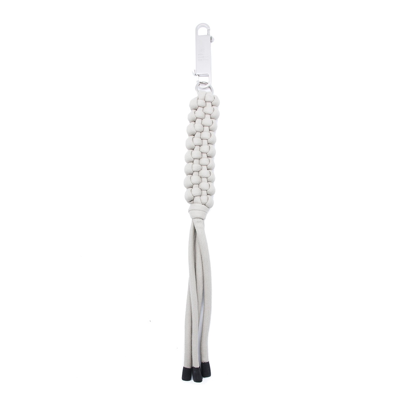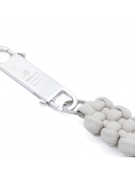 White key ring from Moncler + Rick Owens featuring snap hook and knitted rope.