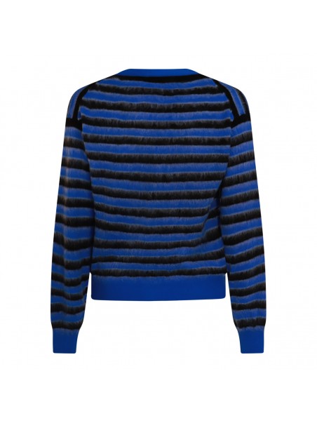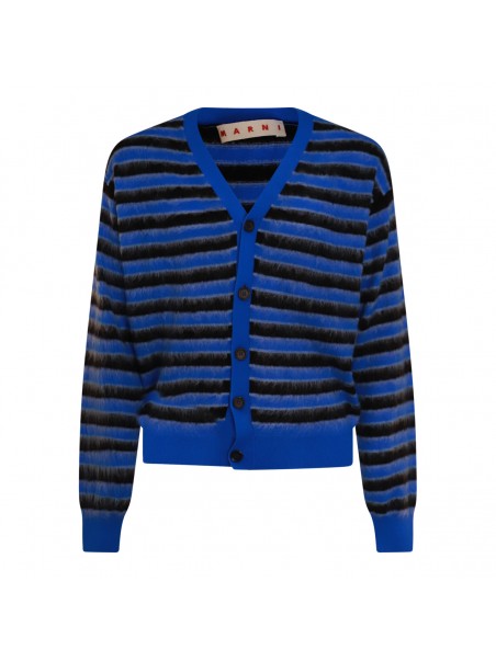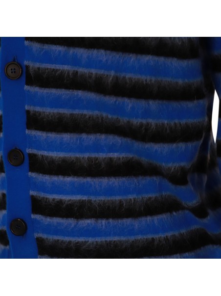 Blue and black wool knitwear from Marni featuring long sleeves, ribbed cuffs and hem, all over stripes and soft vestibility.