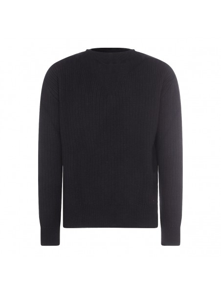 BLACK WOOL FISHERMAN KNITWEAR