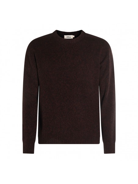 Brown wool knitwear from Altea featuring round collar, long sleeves, ribbed cuffs and hem and soft vestibility.