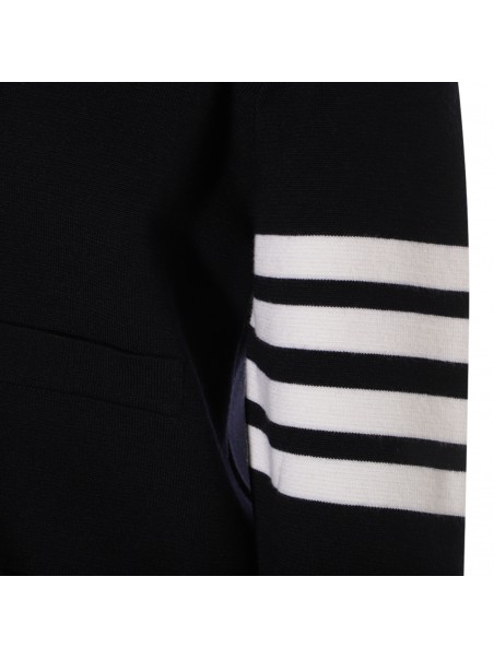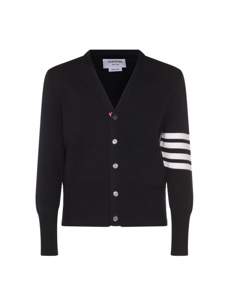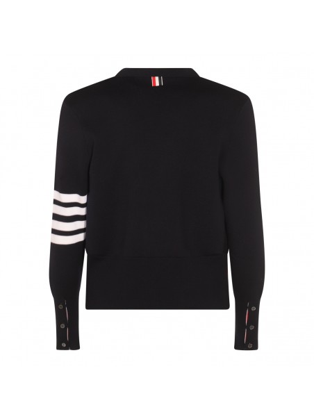 Navy blue wool knitwear from Thom Browne featuring long sleeves, buttons fastening, pocket and regular vestibility.