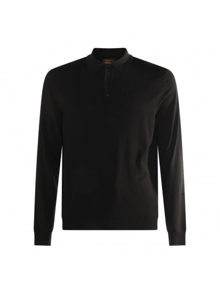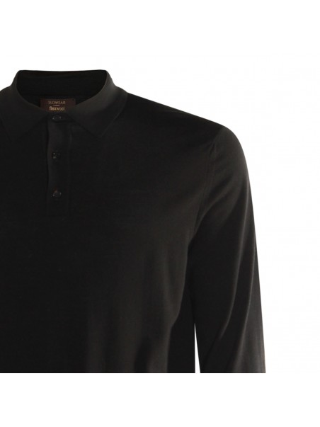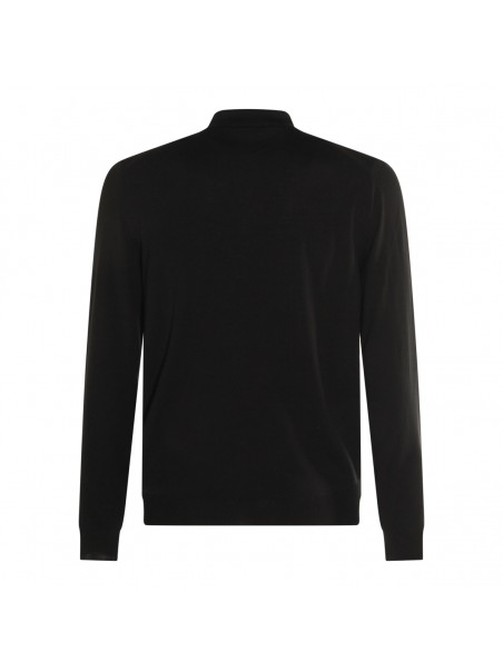 Black wool knitwear from Zanone featuring long sleeves, polo shirt collar and soft vestibility.