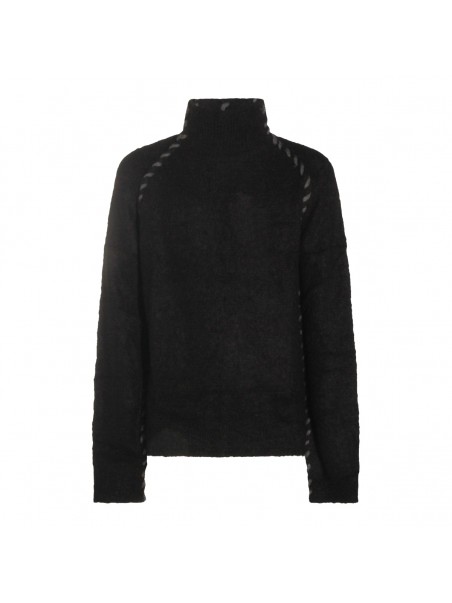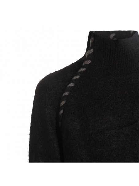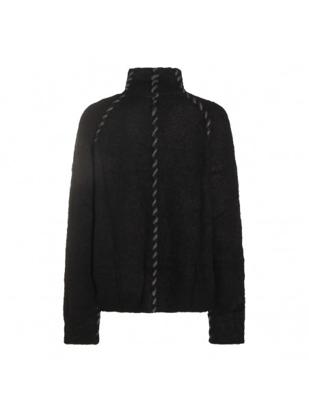 Black wool knitwear from Thom Krom featuring high collar, long sleeves, contrasting stitchings and regular vestibility.
