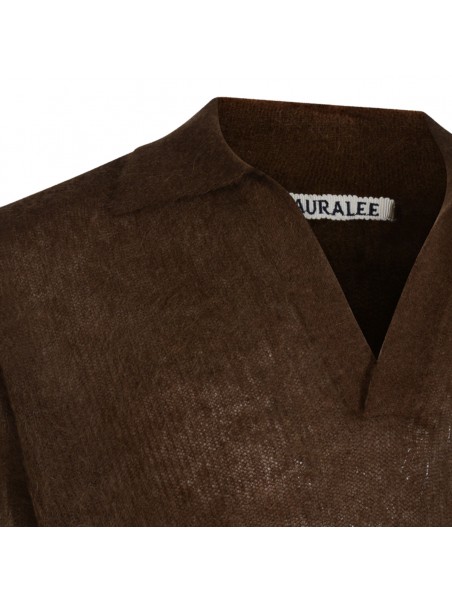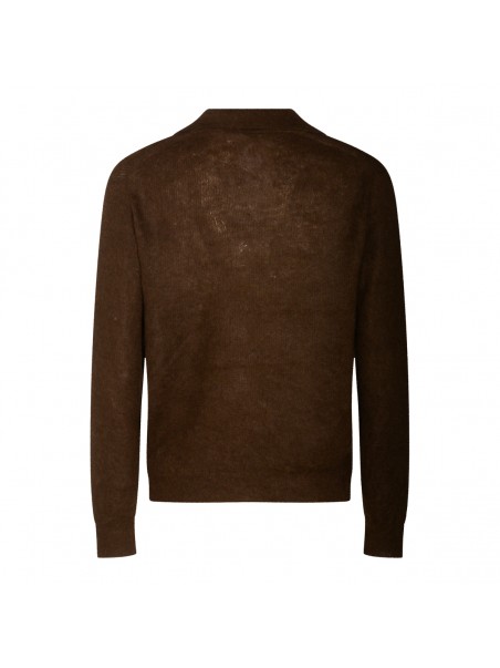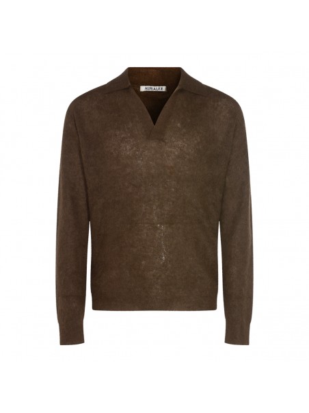 Brown knitwear from Auralee featuring long sleeves, polo shirt collar and soft vestibility.