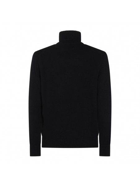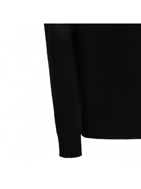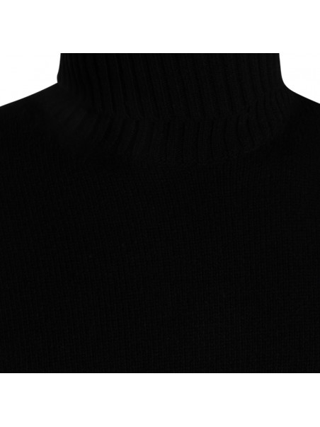 Black wool knitwear from Seven Gauce featuring long sleeves, high collar, ribbed cuffs and hem and soft vestibility.