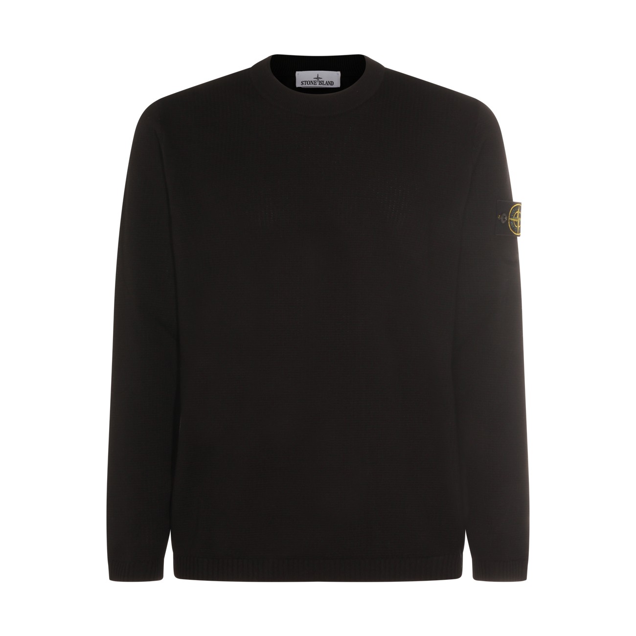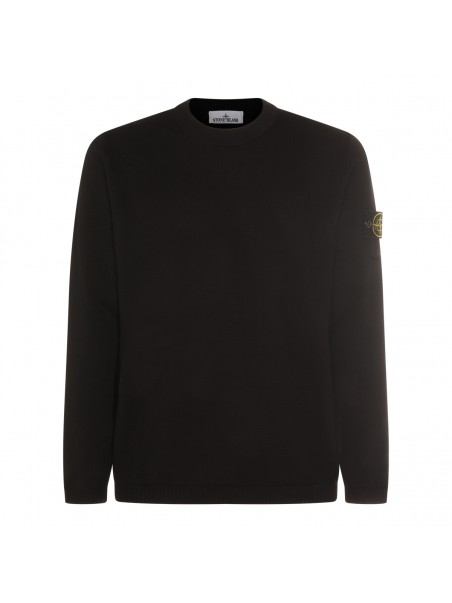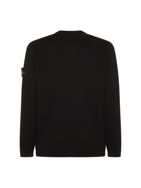 Black cotton knitwear from Stone Island featuring crew neck, long sleeves, lateral removable logo patch and regular vestibility.