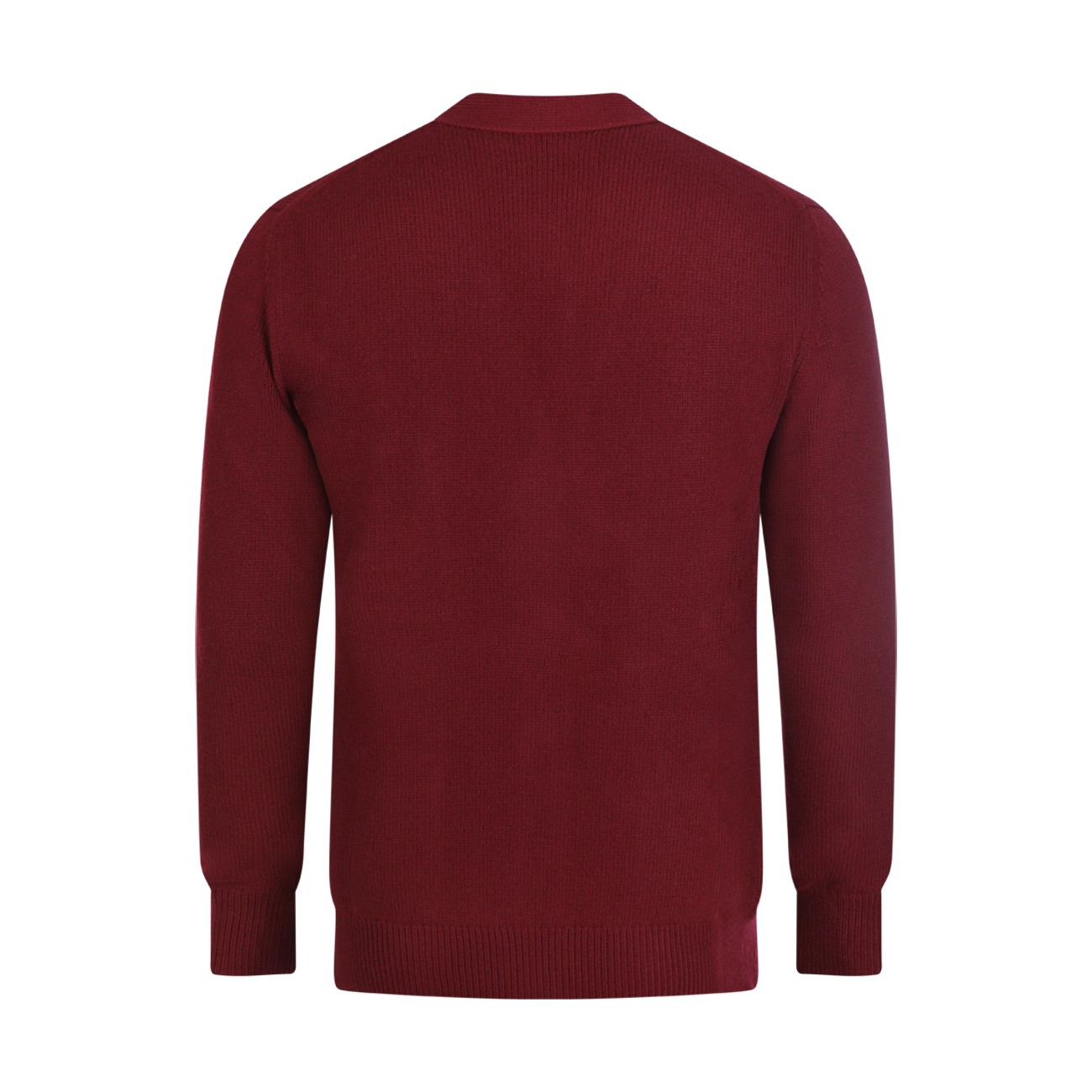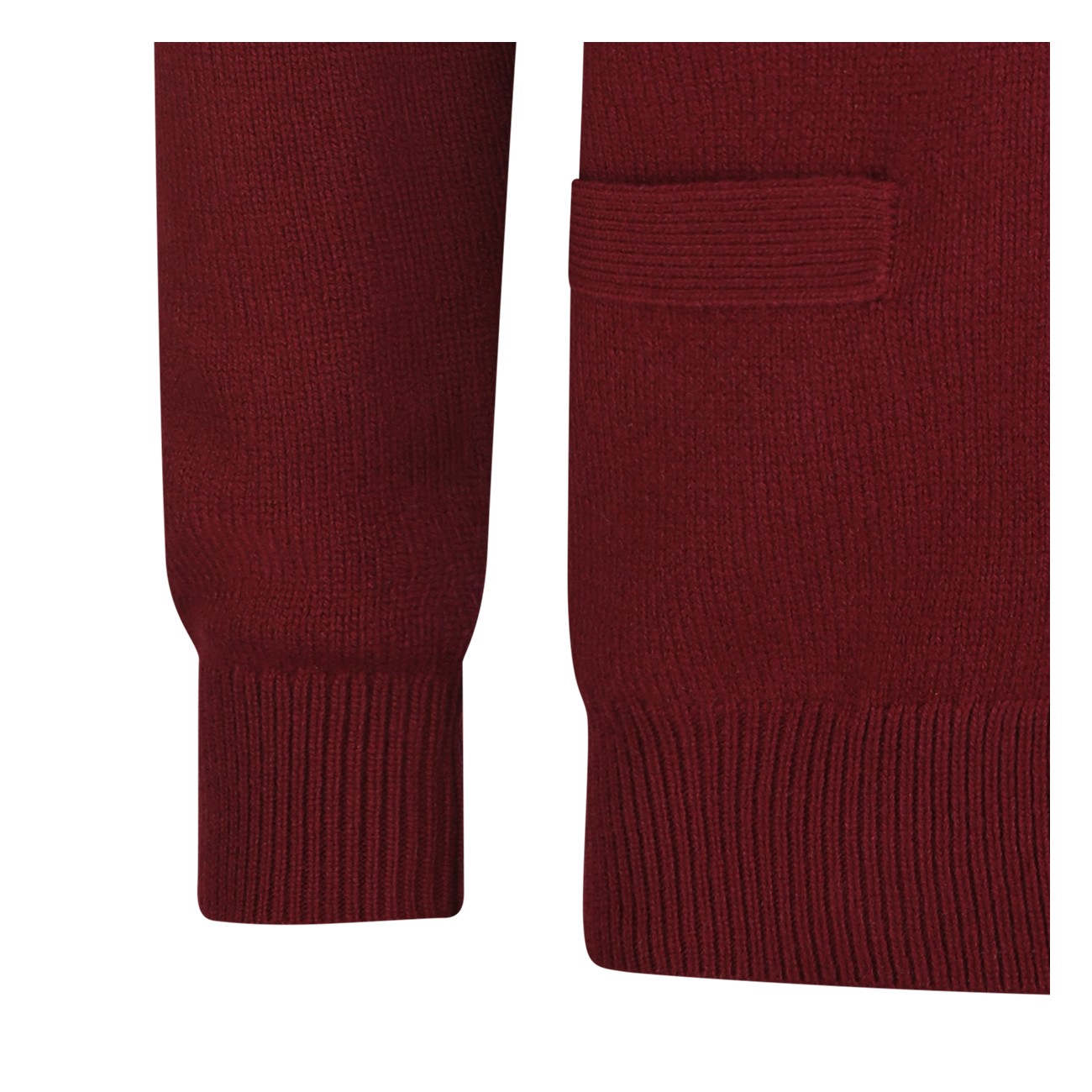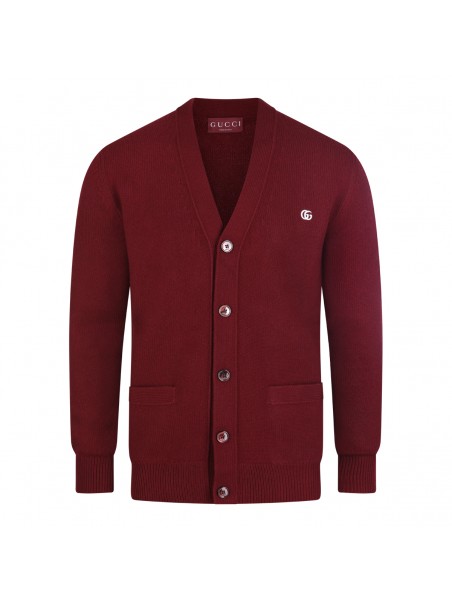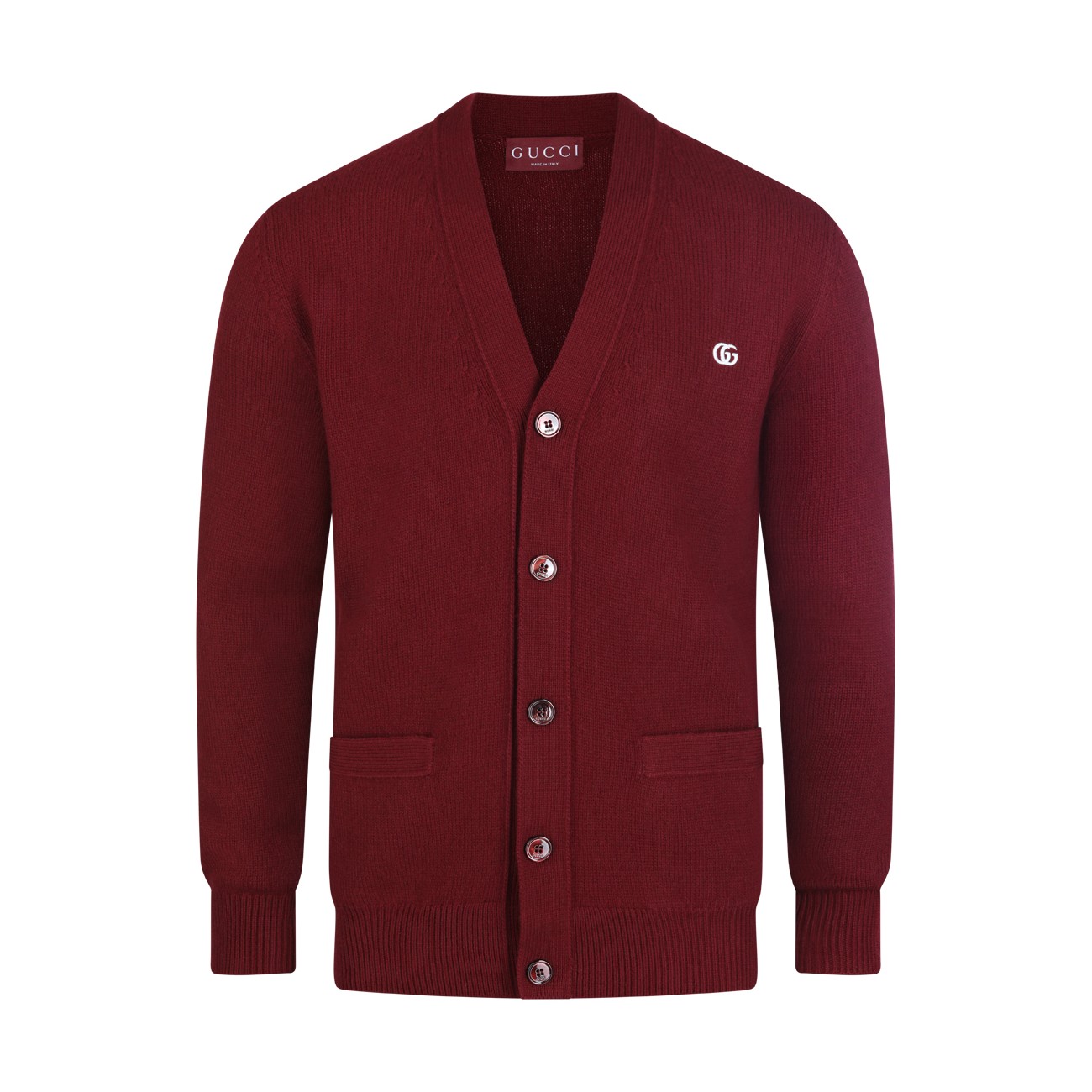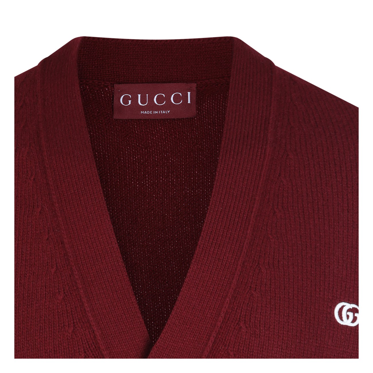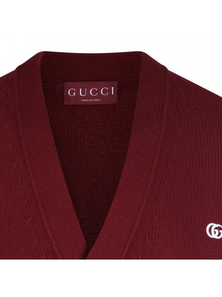 Red wool blend knitwear from Gucci featuring V-neck, buttons fastening, long sleeves, pockets, frontal logo and regular vestibility.