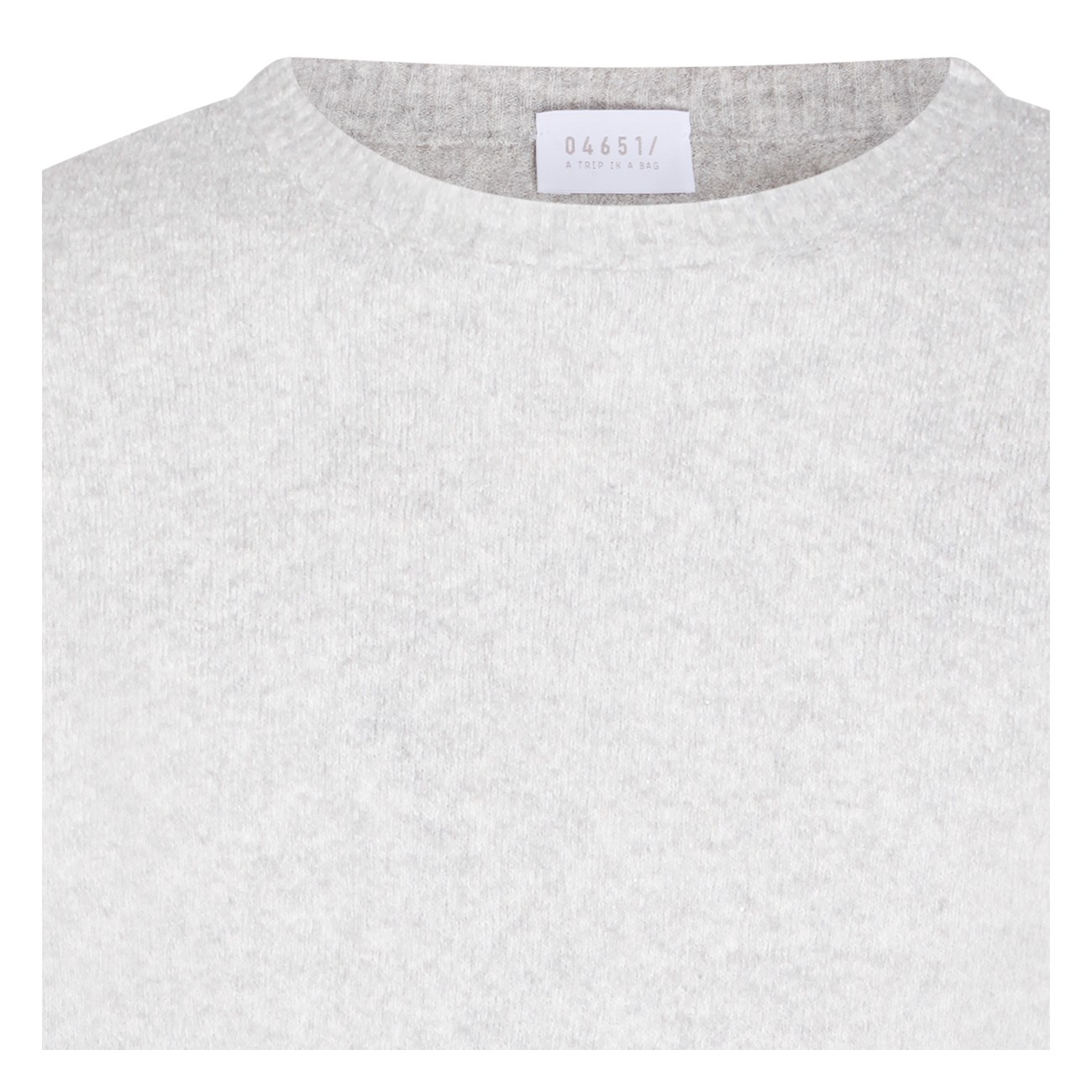 Pearl grey cotton knitwear from 04651/A TRIP IN A BAG featuring long sleeves, round neck, straight hem and regular fit.