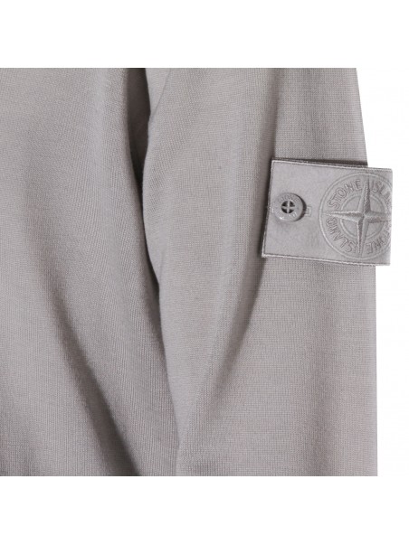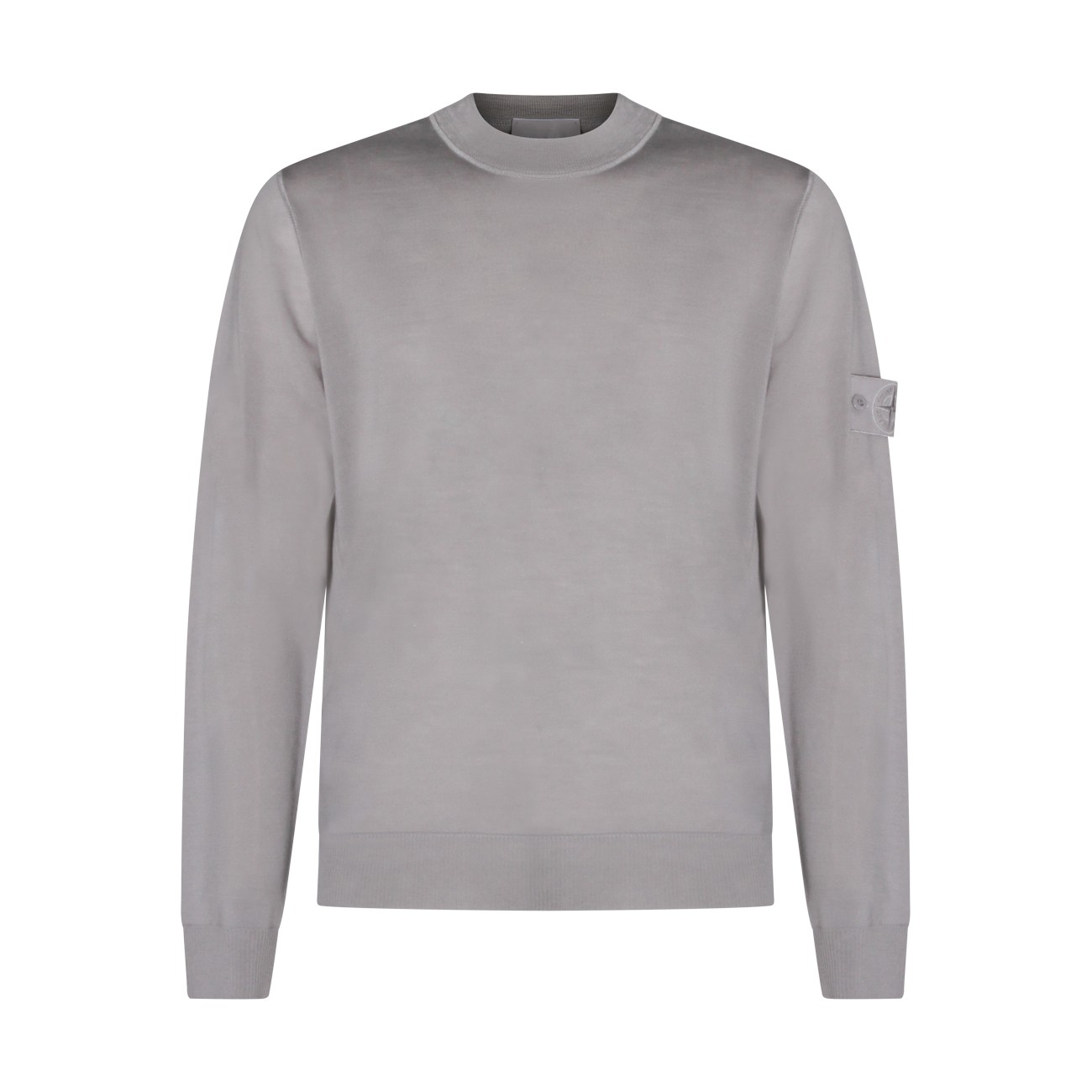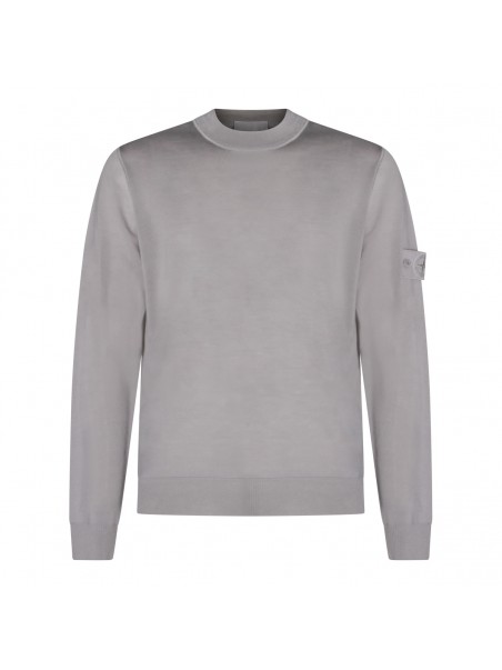 Dust knitwear from Stone Island featuring long sleeves, round collar, logo patch and ribbed cuffs and hem.
