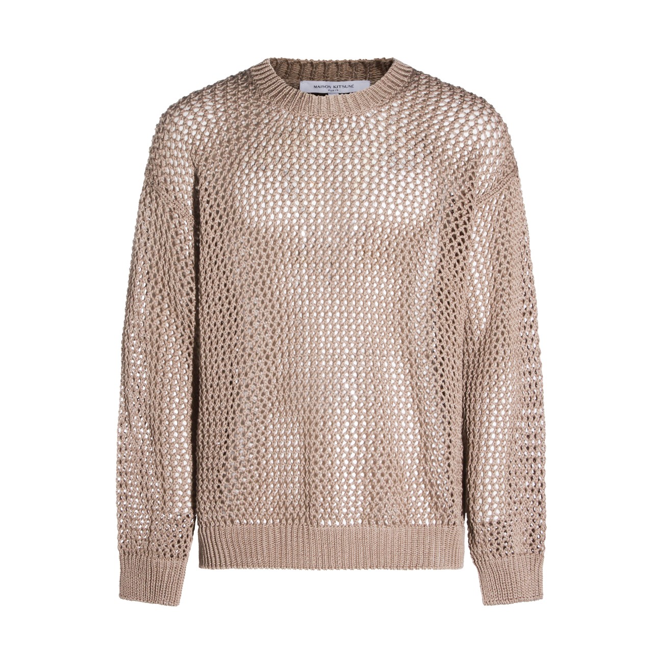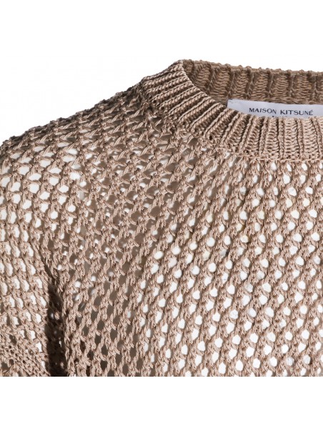 Beige cotton knitwear from Maison Kitsune featuring long sleeves, round collar, elasticated waist, perforated effect and regular vestibility.