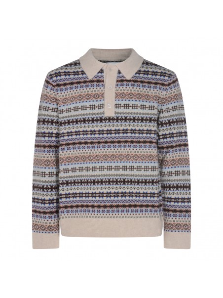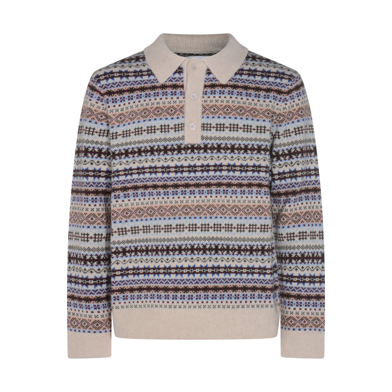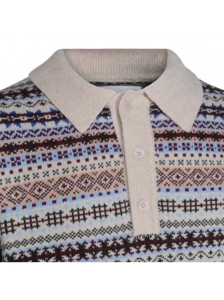 Multicolor wool knitwear from Nn.07 featuring long sleeves, polo shirt collar with buttons and soft vestibiliy.