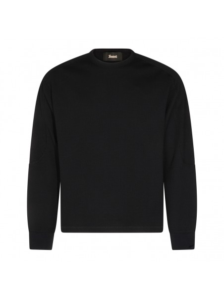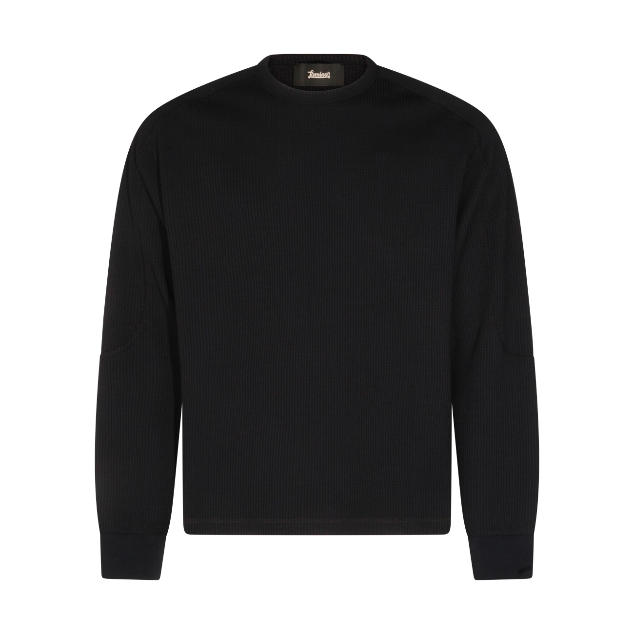 Black knitwear from Laminar featuring crew neck, long sleeves, ribbed cuffs and regular vestibility.