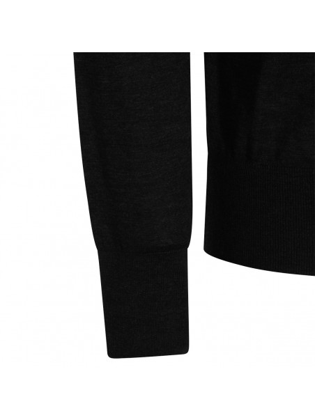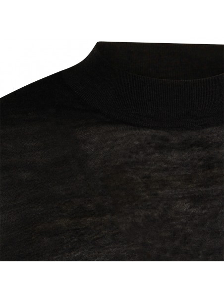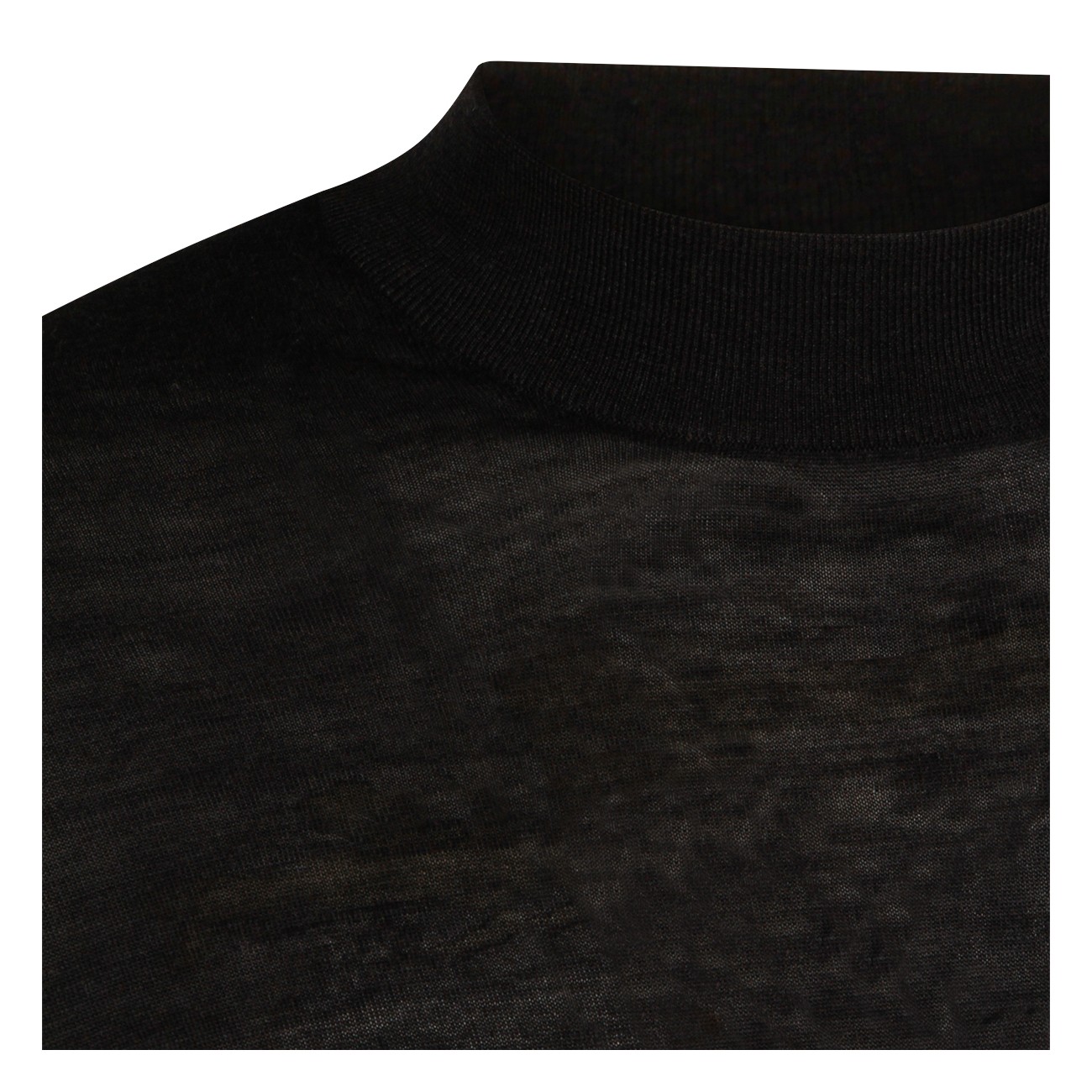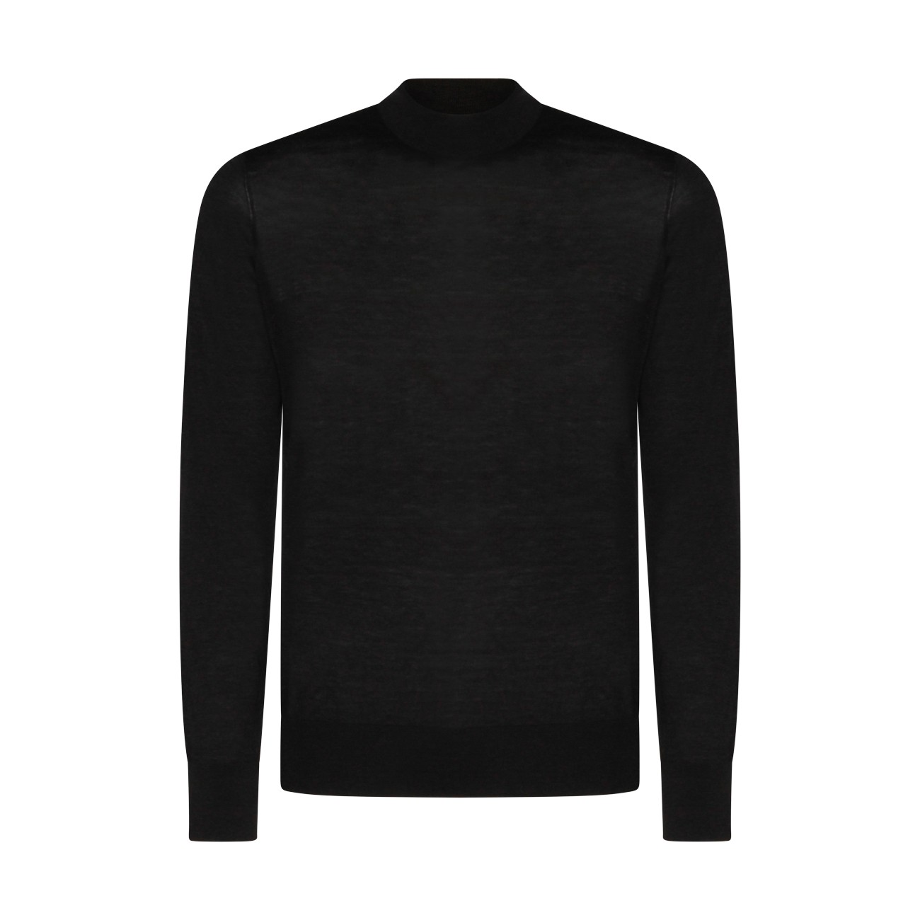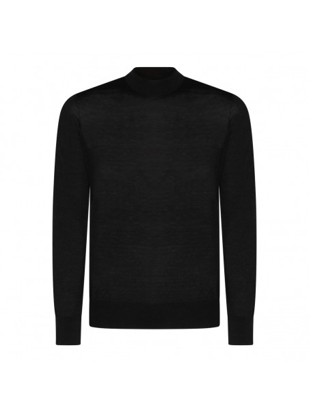 Dark blue silk and cotton blend sweater from Brunello Cucinelli featuring high neck, long sleeves, ribbed hmes and slim fit.