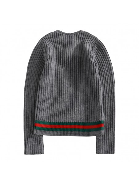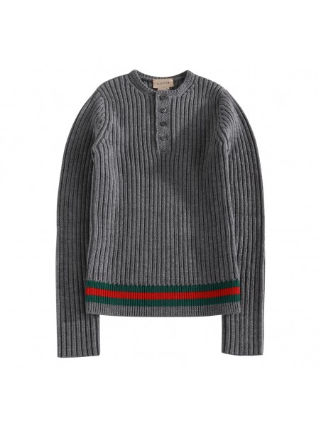 Grey cotton knitwear from Gucci featuring long sleeves, round collar with buttons, hem decoration and regular vestibility.