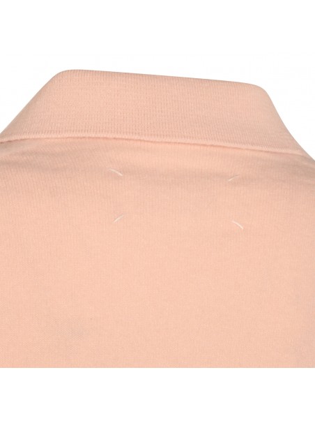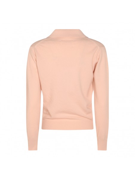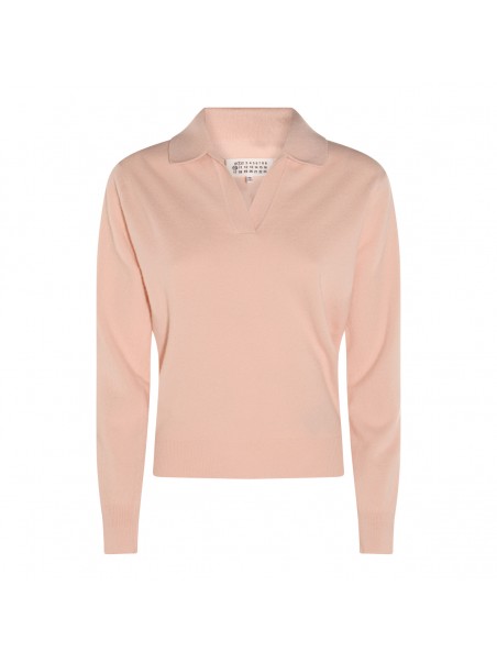Pink wool knitwear from Maison Margiela featuring long sleeves, polo shirt collar, ribbed cuffs and hem and soft vestibility.