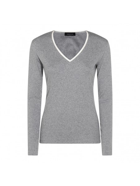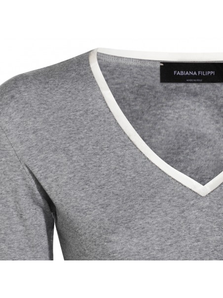 Grey cotton knitwear from Fabiana Filippi featuring long sleeves, v neckline and regular vestibiity.