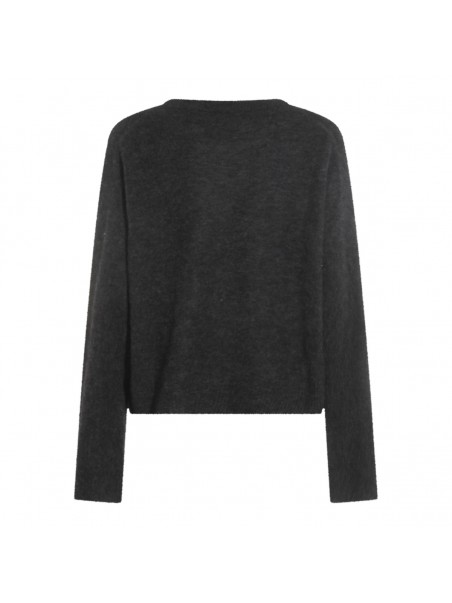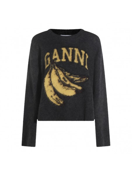 Black knitwear from Ganni featuring long sleeves, round collar, frontal logo and soft vestibility.