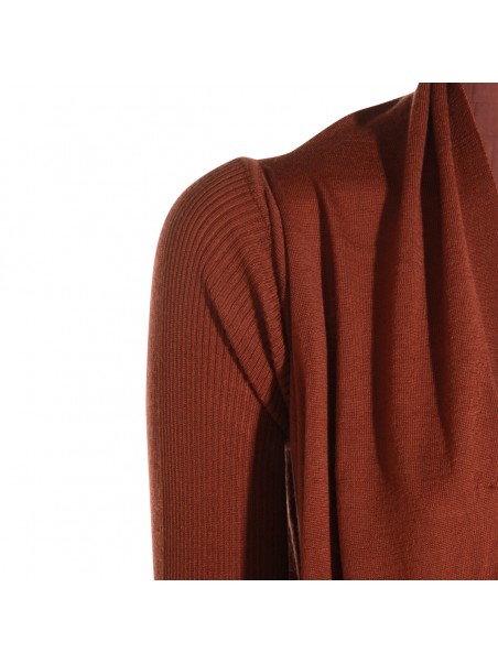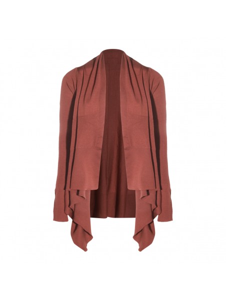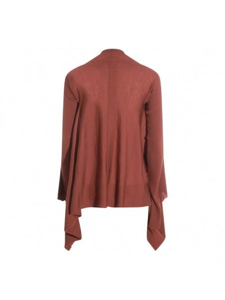 Dark rose wool knitwear from Rick Owens featuring long sleeves, frontal fastening and soft vestibility.