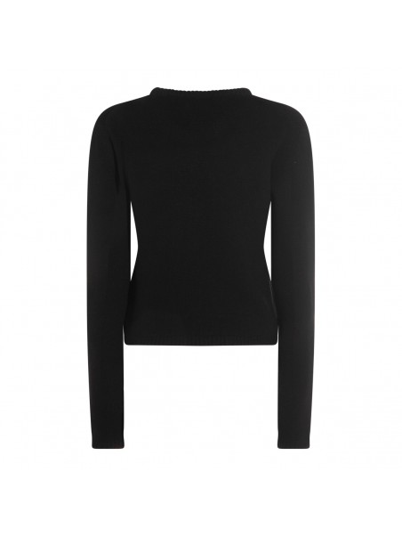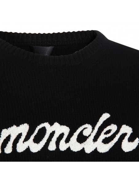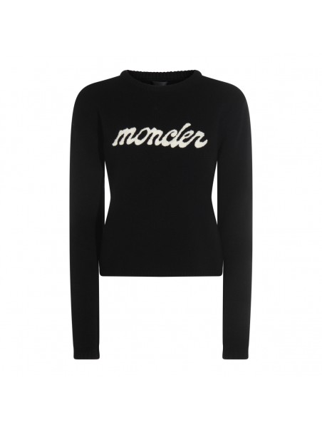 Black Cashmere knitwear from Moncler featuring round collar, long sleeves, frontal logo and soft vestibility.