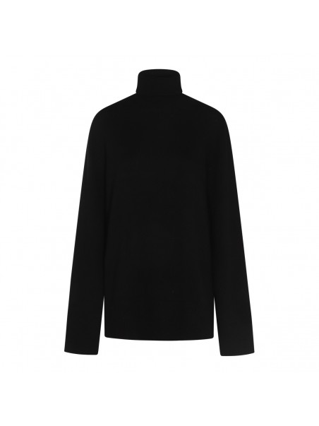 Black wool knitwear from The Row featuring high collar, long sleeves and soft vestibility.