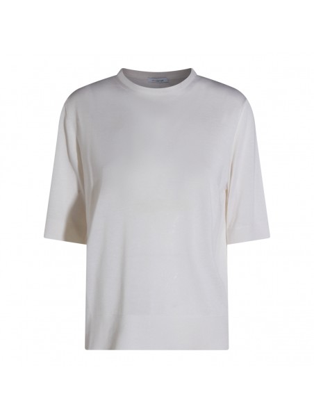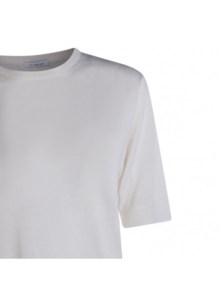 White cashmere knitwear from Malo featuring crew neckline, short sleeves and regular vestibility.