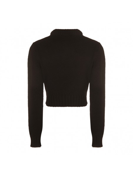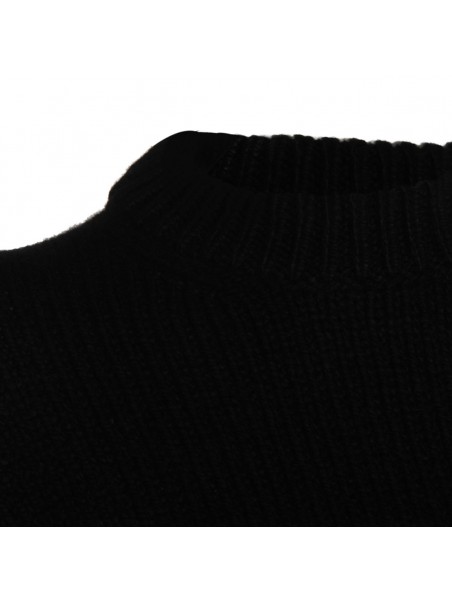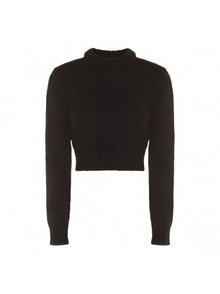 Black cashmere knitwear from Malo featuring round ribbed collar, long sleeves, ribbed cuffs and hem, cropped and regular vestibility.