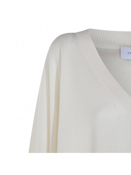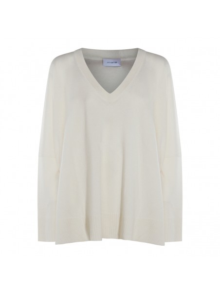 White cashmere knitwear from Malo featuring v neckline, long sleeves and soft vestibility.