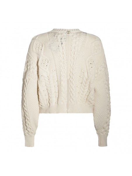 Light beige cotton blend jumper from Twinset featuring crew neck, long sleeves, straight hem, ribbed cuffs and hem.