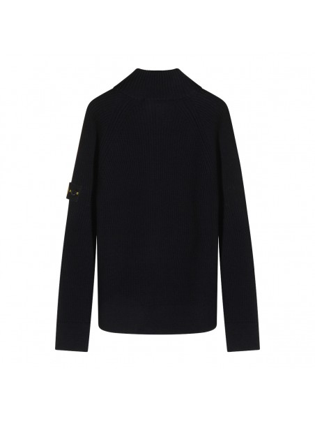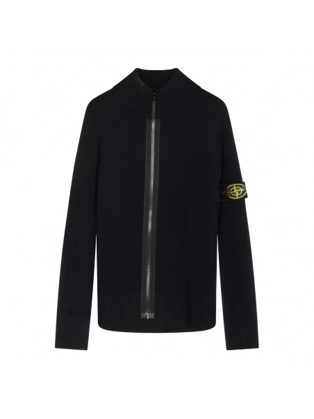 Blue wool knitwear from Stone Island featuring long sleeves, zip fastening, logo patch and regular vestibility.