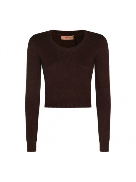 Black viscose knitwear from Twinset featuring round collar, long sleeves and soft vestibility.