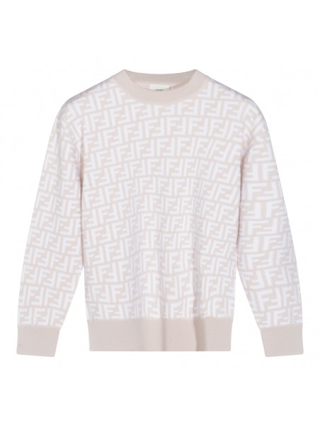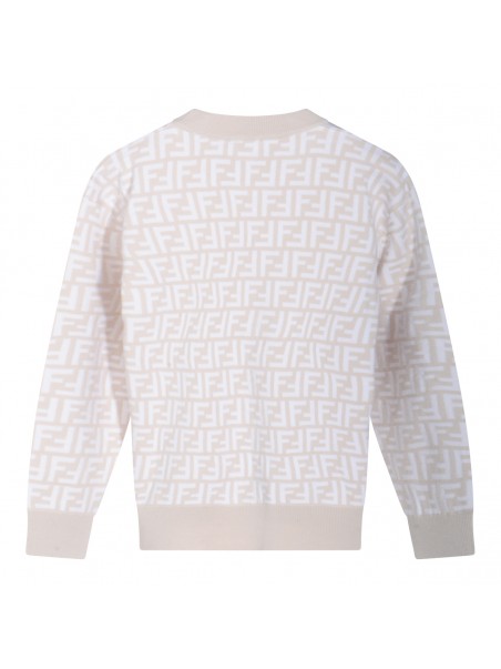 Beige wool knitwear from Fendi featuring crew neckline, long sleeves, all-over FF motif and regular vestibility.