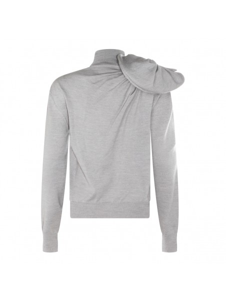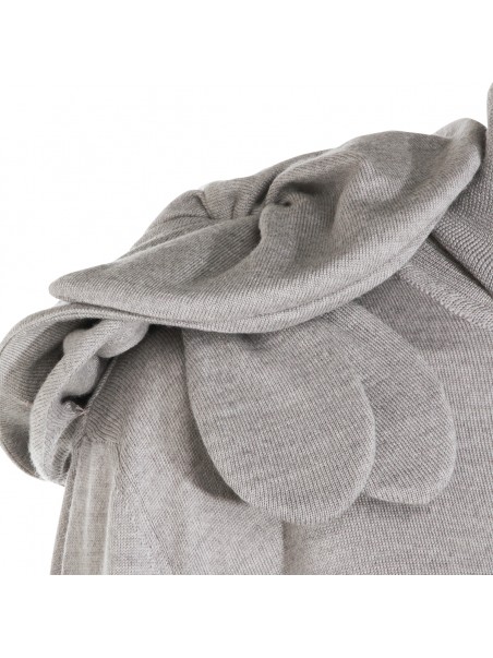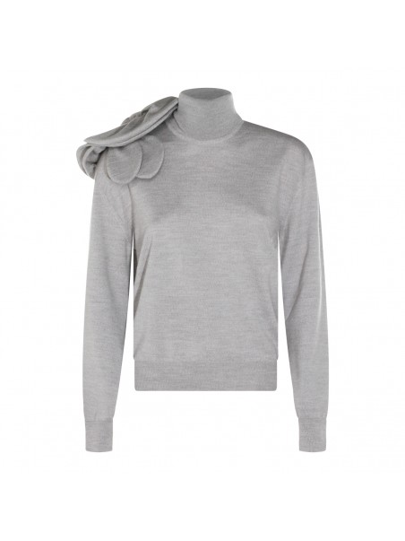 Grey wool knitwear from Moschino featuring high collar, long sleeves, flower patch and regular vestibility.