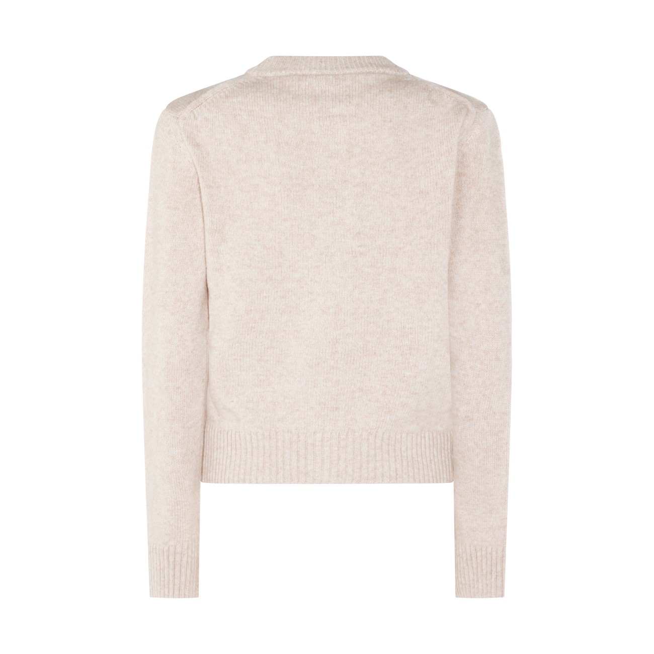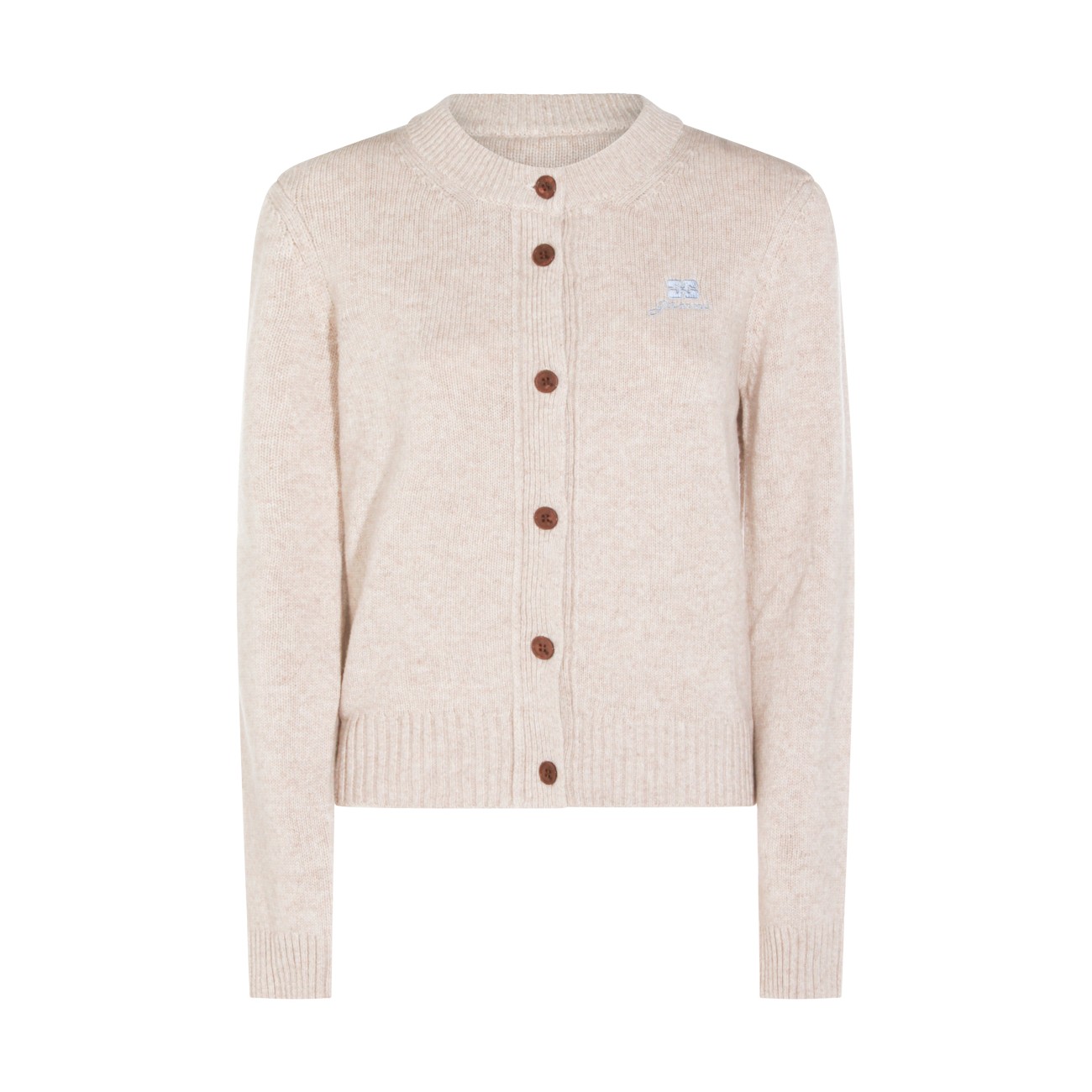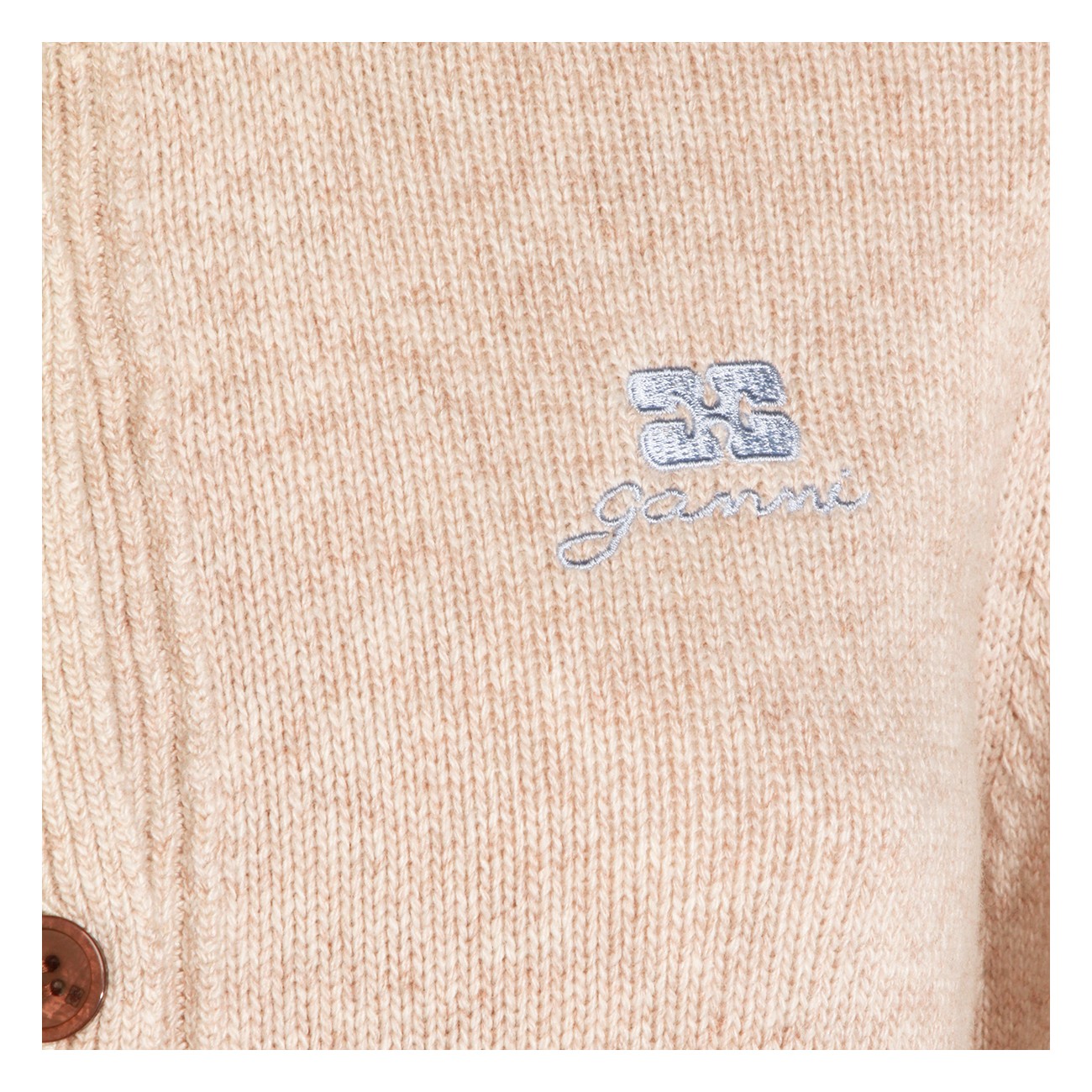 Beige wool knitwear from Ganni featuring round collar, long sleeves, frontal buttons fastening and regular vestibility.
